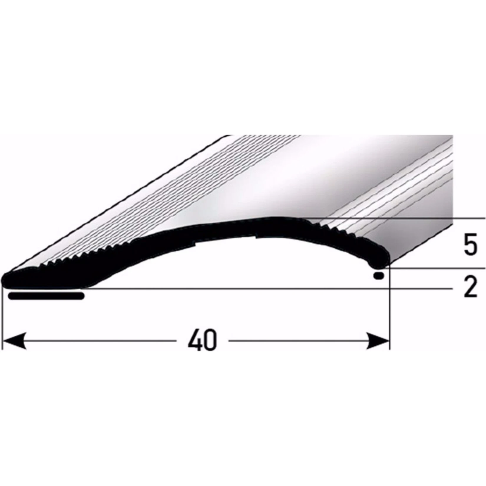 - Länge = 100cm | Sichtbreite = 40mm | Höhe= 2-16mm | Farbe = silber | Material = eloxiertes Aluminium | selbstklebend