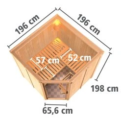 Die integrierte Holzbank bietet Ihnen einen robusten und sehr bequemen Sitzplatz. Mit einem Stellmaß von 90×90 cm bleibt die Wärmekabine eine platzsparende Angelegenheit, ideal für den privaten Gebrauch. Schaffen auch Sie sich Ihre eigene kleine Wellness-Oase für Zuhause.