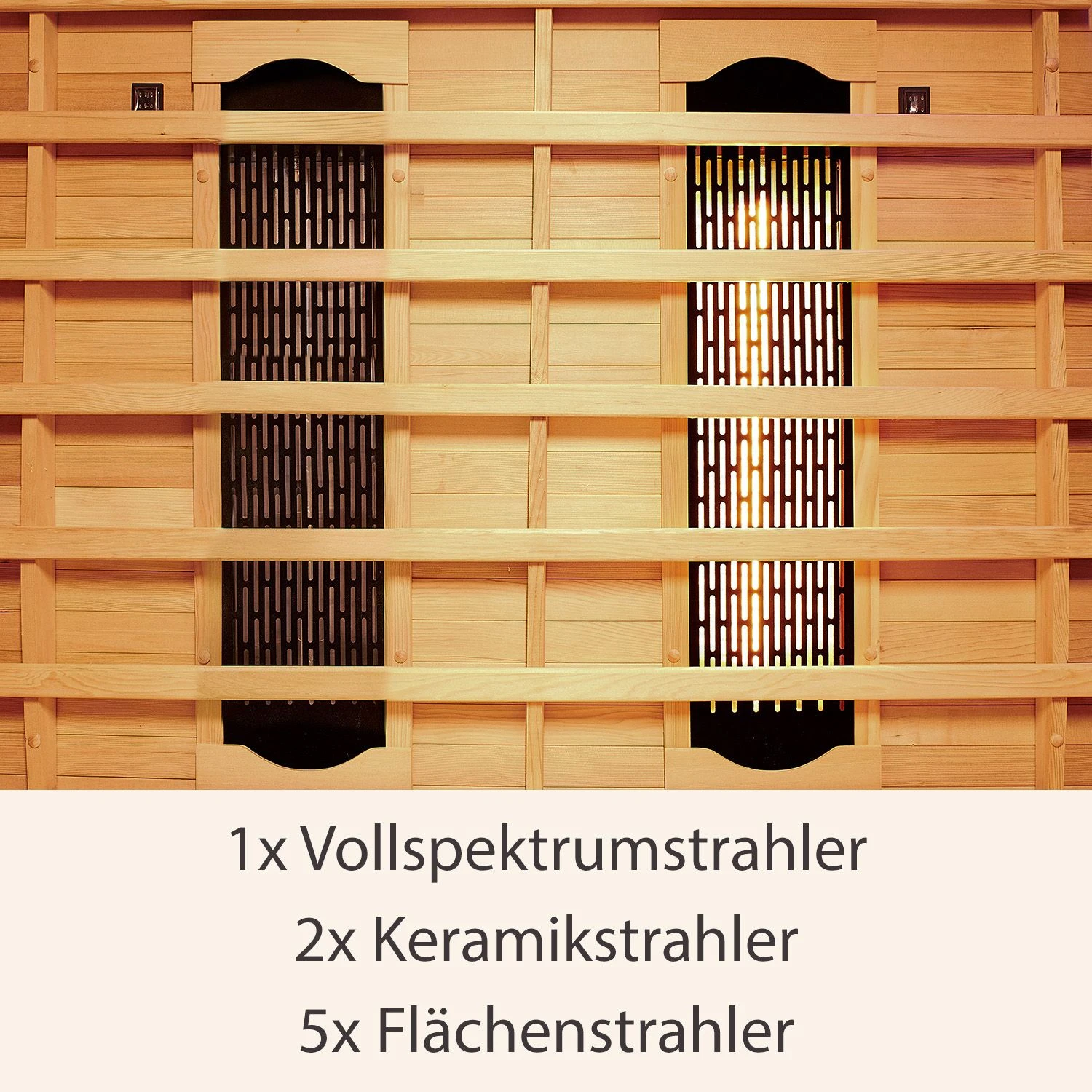 - Anzahl Strahlerelemente: 1 Vollspektrum-, 2 Keramik-, 5 Flächenstrahler