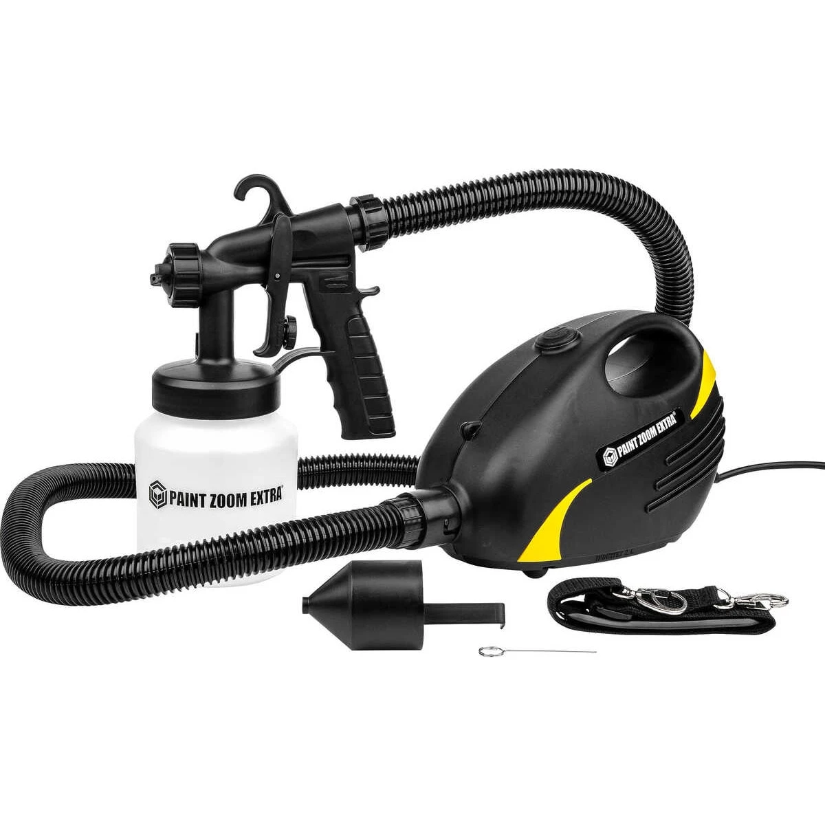 Paint Zoom Extra® – Neues professionelles Power Farbsprühsystem mit besonders leistungsstarker 900 Watt Motor! Neuartiges Spritzsystem für Farben, Färbemittel und Abdichtmittel. Genaue Regulierung der Farbmenge für eine Farbersparnis. Einstellung des Farbstrahls für präzises Aufbringen der Farbe für einen gleichmäßigen Anstrich.