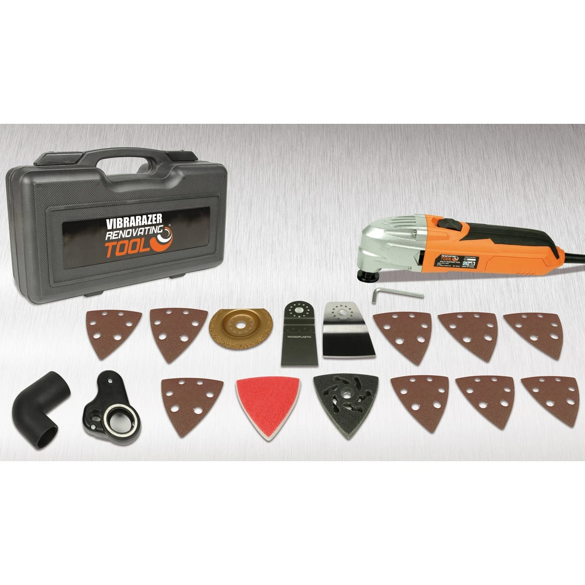 Vibrarazer Renovating Tool® Pro Series – Renovierungswerkzeug – das erstaunliche neue Elektrowerkzeug, das die Kraft eines Profis in die Hand nimmt. Ein Werkzeug, das so leicht und doch so leistungsstark ist, dass Sie es für Dutzende von Heimwerkerprojekten rund um Ihr Haus auf Metall, Kunststoff, Holz, Rigipsplatten, Keramikfliesen und Stein verwenden möchten. Kein anderes Werkzeug auf der Welt ist so vielseitig wie der Vibrarazer! Jetzt werden die Arbeiten, die Sie früher fürchteten, schnell und einfach gemacht und gleich beim ersten Mal richtig erledigt. Arbeiten wie das Ersetzen von alten Fugenmörtel oder einer gebrochenen Fliese, ohne die umliegenden Fliesen zu beschädigen oder die Aufkantung zu beschädigen. Durchtrennen von Trockenbauwänden, ohne die Drähte hinter der Wand zu treffen. Im Gegensatz zu gefährlichen Werkzeugen mit rotierenden Schneidmessern oder gezackten Kolbenmessern nutzt Vibrarazer die Kraft der Oszillationstechnologie, die bis zu 22.000 Mal pro Minute schwingt. Das ist Hightech-Werkzeugtechnologie, die so fortschrittlich ist, dass sie die härtesten Materialien durchschneidet, aber so sicher, dass sie Sie nicht schneidet. – Leicht und leistungsstark – Schneidet durch härteste Materialien – Einfach & sicher in der Anwendung – Verschiedene Klingen.