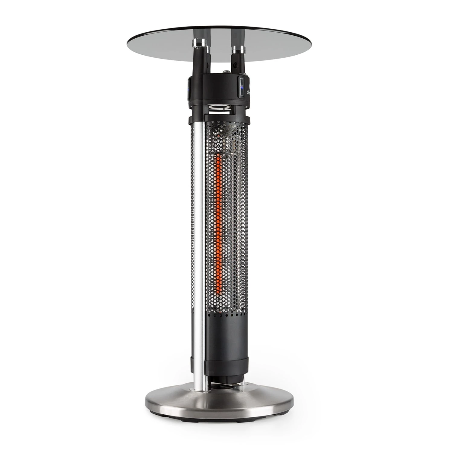 blumfeldt Primal Heat 65 Tisch-Heizgerät | Bistrotisch | Heizstrahler | Karbon-Infrarot-Heizelement: 1200 Watt | Schutzart IP44 | 65 cm (H) | Tischplatte aus Sicherheitsglas Ø50 cm & LED-Beleuchtung | Infrarot-Sensor mit ca. 60 cm Reichweite | Edelstahl | silber
