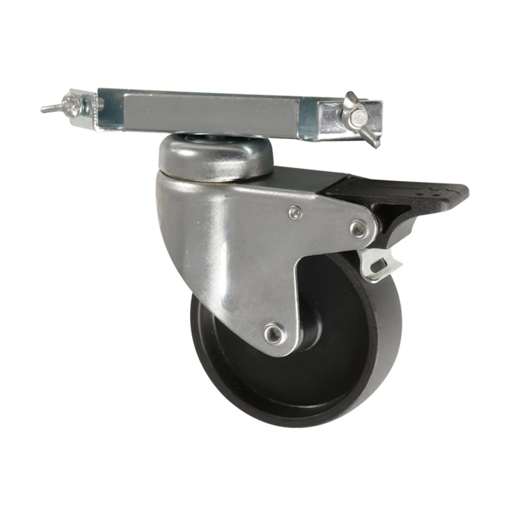 Der BRB Rollensatz für Alu-Behälter, Rad-Ø 75 mm besteht aus 4 anschraubbaren Lenkrollen mit Feststellbremsen, zur Montage an die Außenrahmen der Alubehälter.