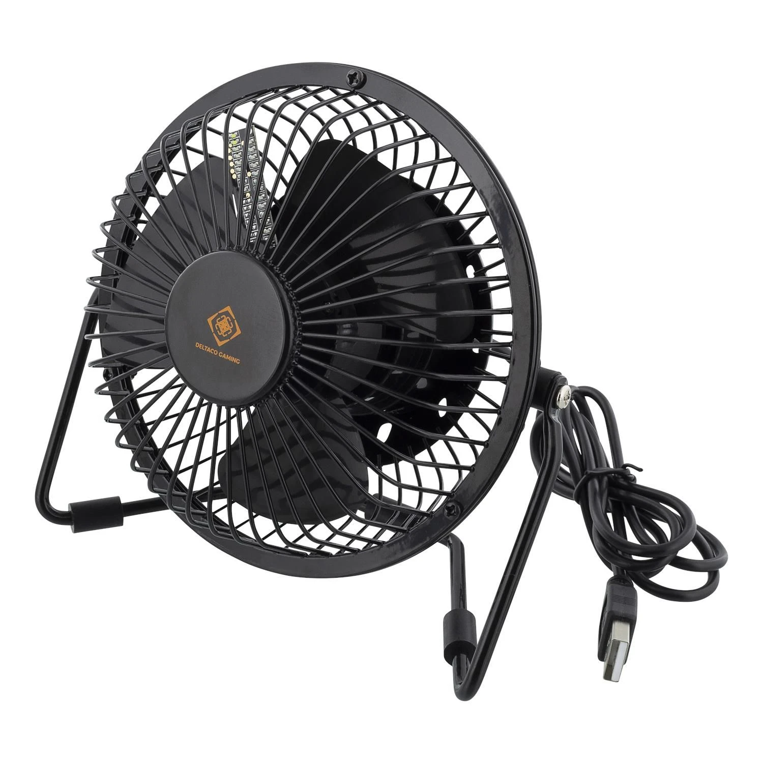 Wie halten Sie die Wärme in Ihrem Raum niedrig und behalten dabei den Überblick, wie spät es ist? Mit unserem USB-Tischventilator von DELTACO GAMING ist genau das möglich. Zwischen zwei der Rotorblätter befindet sich eine schwarze Platine mit einer Reihe von LEDs, die aufleuchten und die Uhr erzeugen, während sich der Lüfter dreht und Ihre Räumlichkeiten abkühlt.