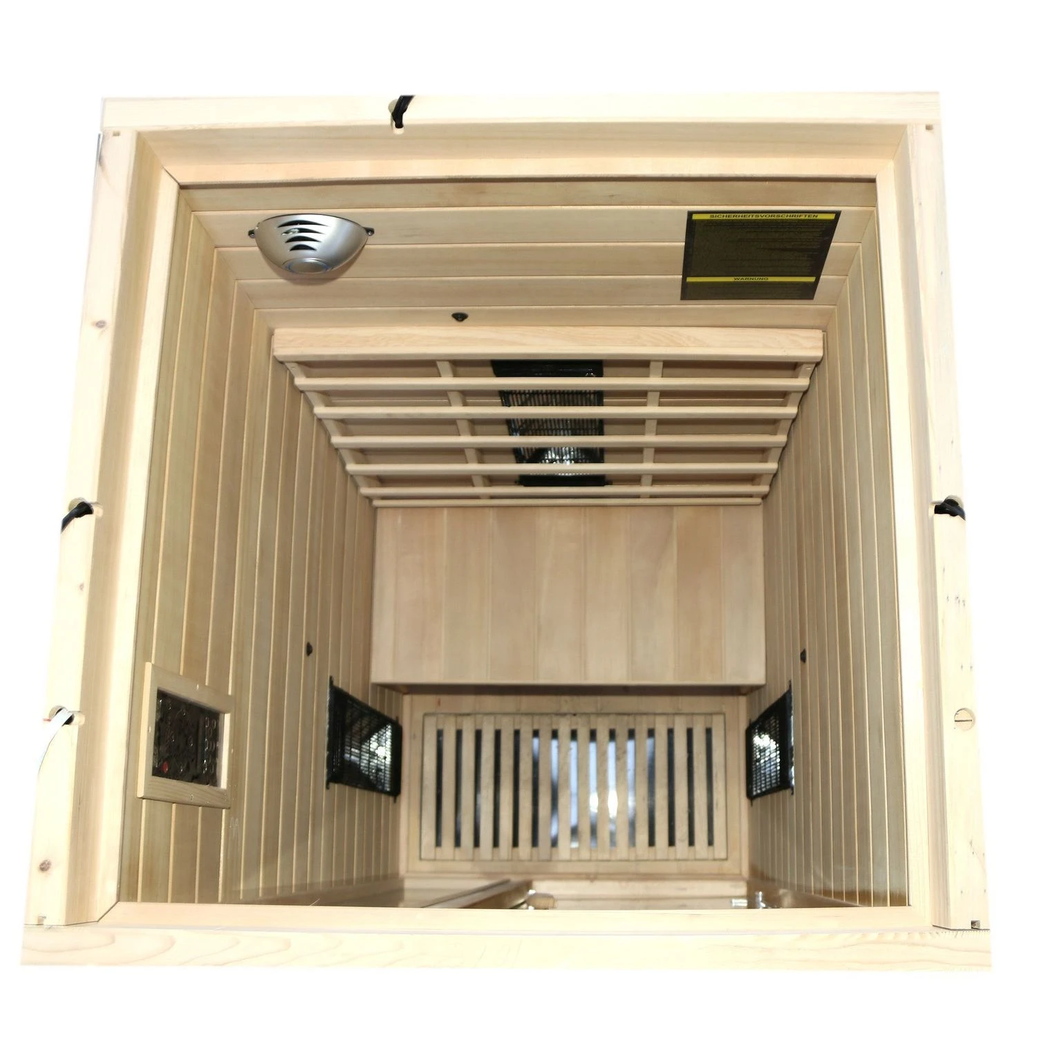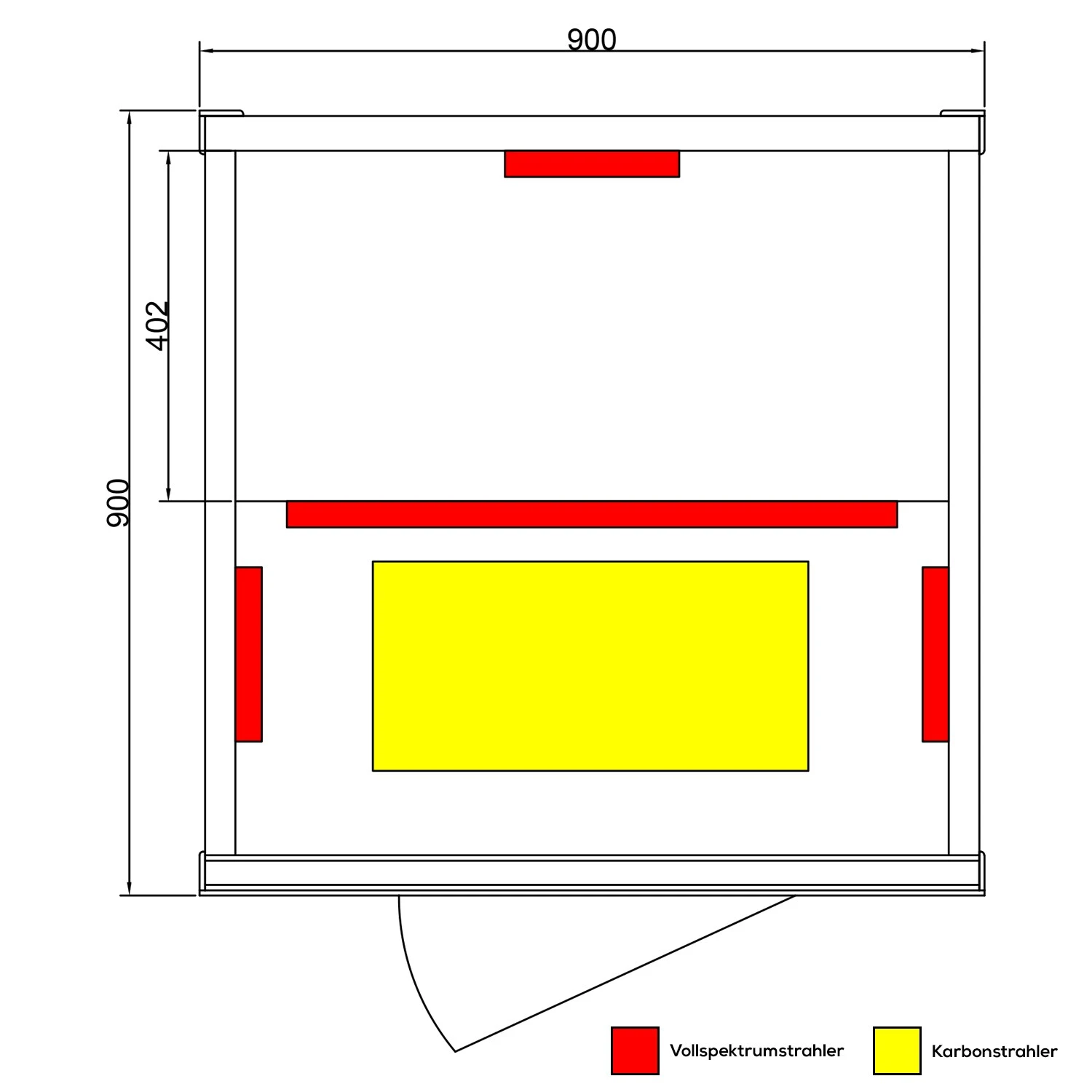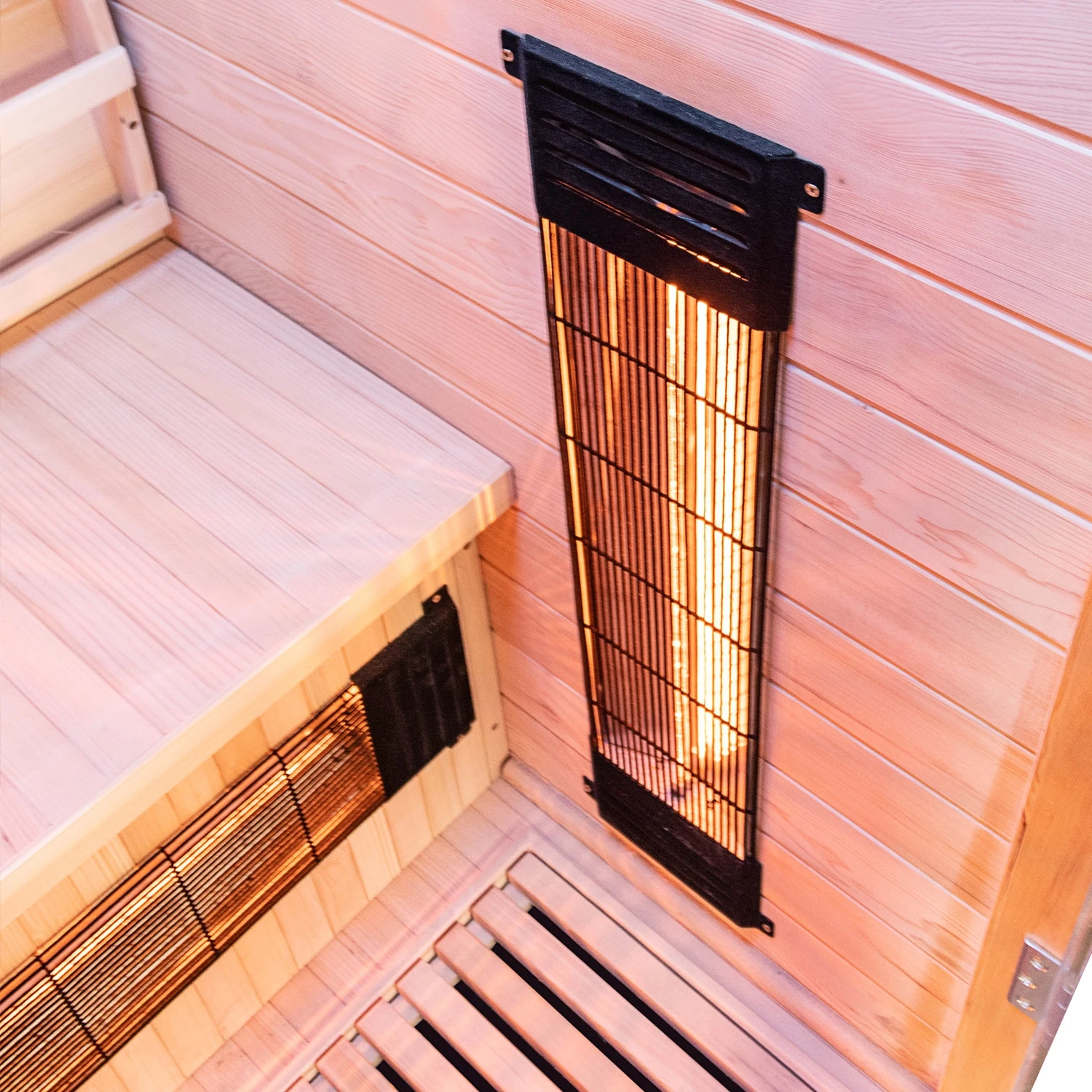 Dieser strahlt zusätzlich von unten, sodass Sie auch im unteren Bereich der Kabine (Fußbereich) Wärme verspüren.