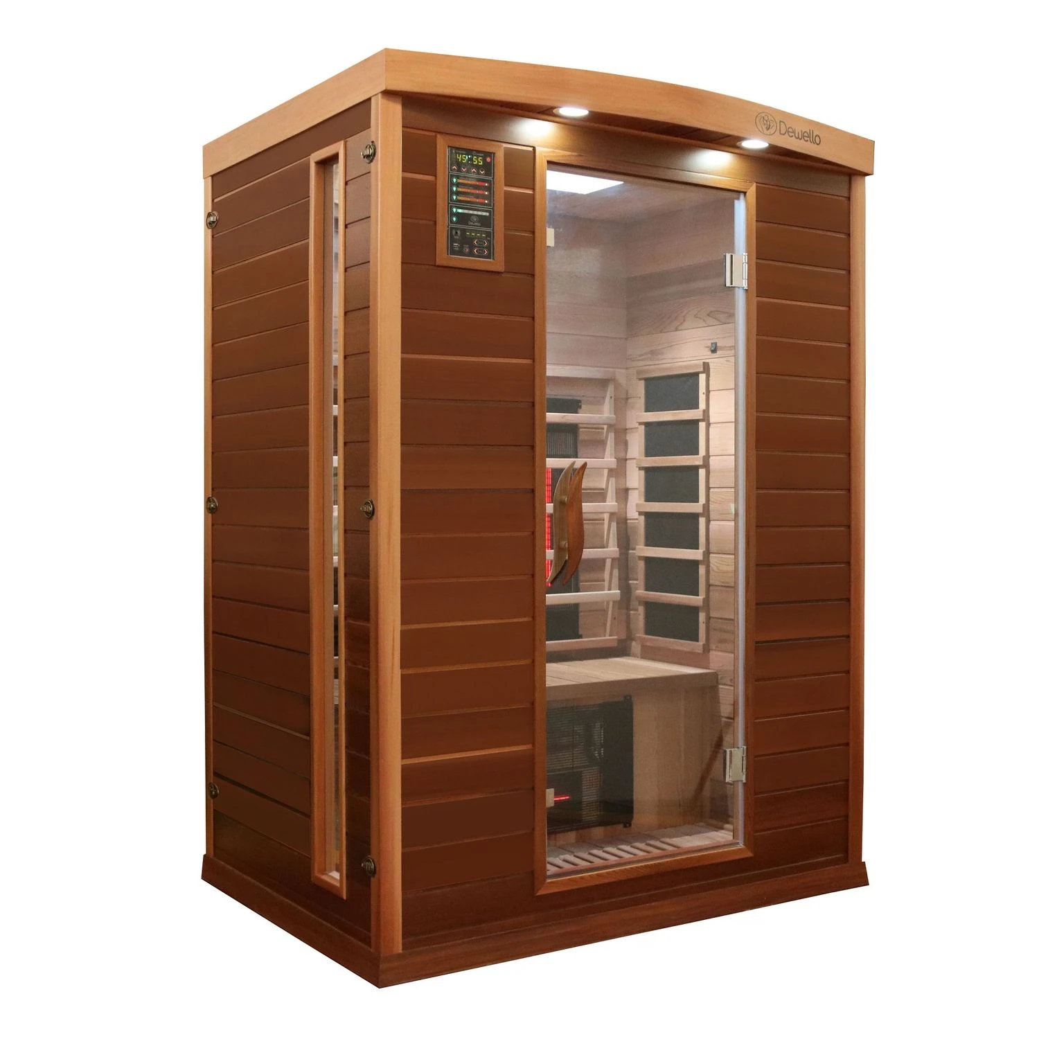 Bei Fragen zu den Wirkungsweisen und Unterschieden der Strahler beraten wir Sie gerne. Unterhaltkosten der Infrarotkabine:Trotz steigernder Energiekosten, haben Sie bei einer Dewello Infrarotkabinen nur geringe Stromkosten. Die PIERSON für eine Person (90cm x 90cm) verbraucht bei einem Saunagang (30 Minuten) nur etwa 0,7 Kwh. Somit liegen Sie hier nur bei etwa 35 Cent Stromkosten (bei 0,5€ pro Kwh). Die 2 Personen (135cm x 105cm) Variante kommt bei gleicher Nutzung auf etwa 53 Cent Stromkosten, während man bei dem 3 Personen Modell (160cm x 105cm) mit etwa 60 Cent pro Saunagang rechnen muss. Dank der vielen Strahler und vor allem der hochwertigen Vollspektrumstrahler haben Sie quasi keine Aufheizzeit und sparen zusätzlich an Energie. Dewello Infrarotkabinen sind im Vergleich zu herkömmlichen Saunen daher sehr energiesparend und bieten bei den derzeit stark steigenden Energiepreisen einen optimalen Kompromiss zwischen Wellness und Unterhaltkosten.