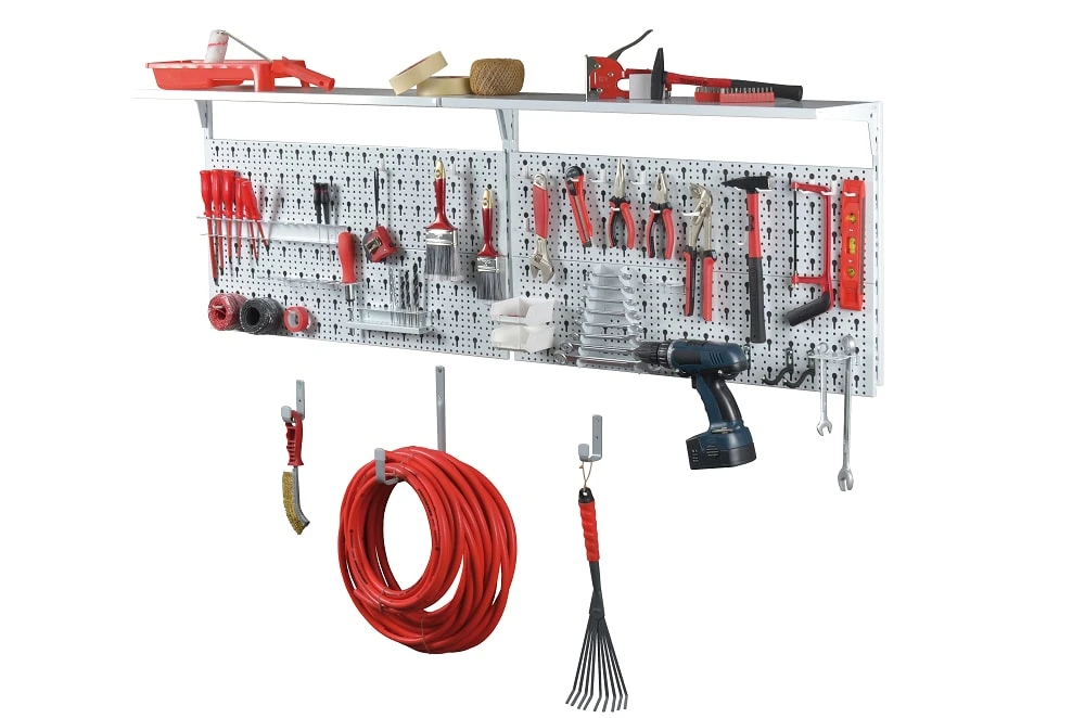 Element System Werkzeugwand mit Abstellregal 72tlg. weiß