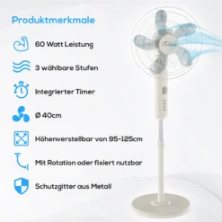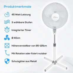 TroniTechnik Standventilator Turmventilator Lüfter SV01 40cm, Inkl. Oszillation, Timer