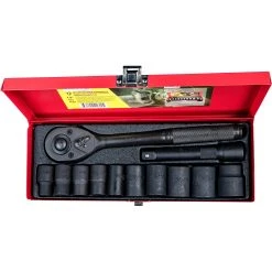 WMC Tools Steckschlüssel Set 12-teilig Werkzeugsatz Werkzeugkoffer 1/2 Zoll Sechskant