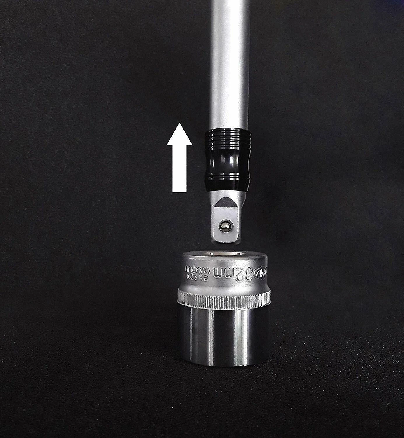 - 1 Verlängerung mit Verriegelungsmechanik, aufgesteckte Teile sind verriegelt, einfaches Lösen durch Betätigen des Rings, 1/2″-Antrieb 250 mm