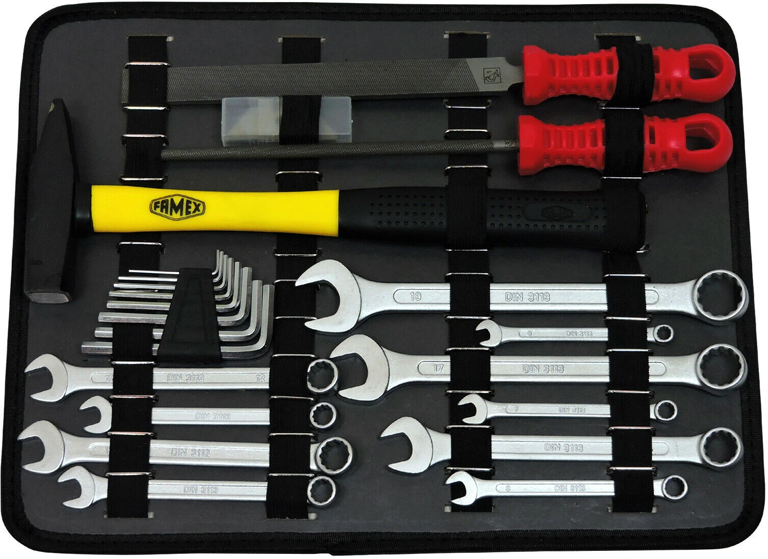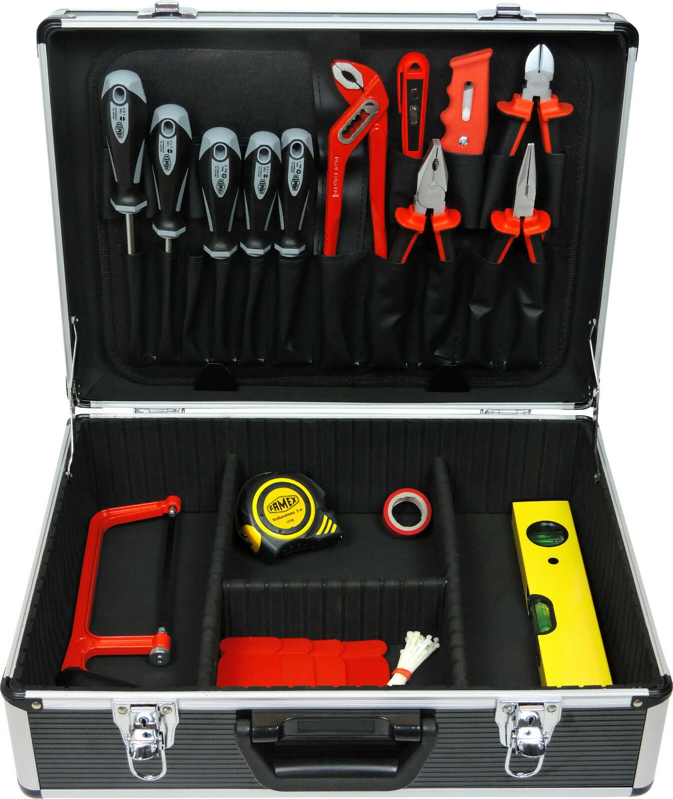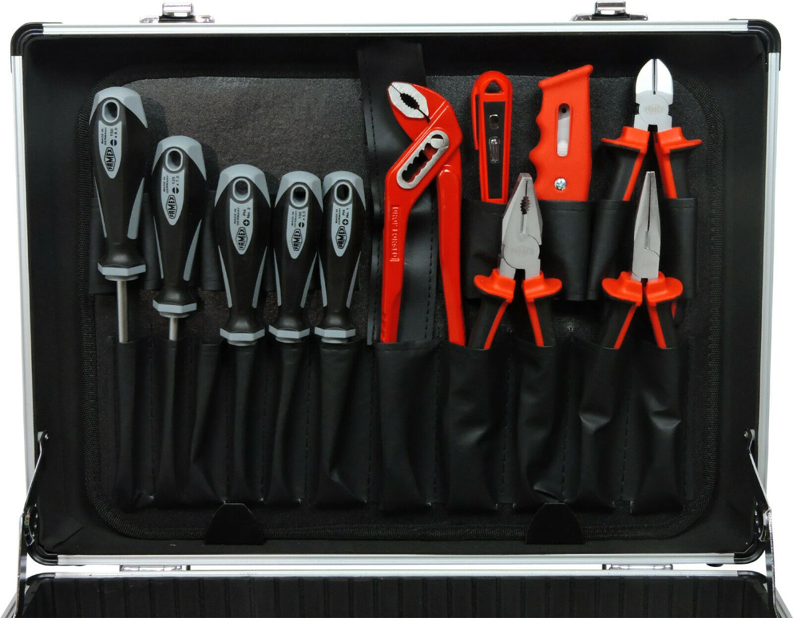 - 1 Werkzeugtasche mit Einstecktaschen im Kofferdeckel