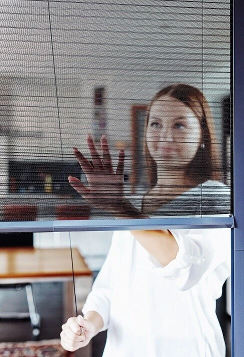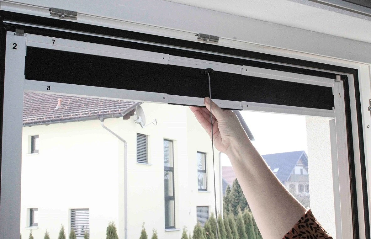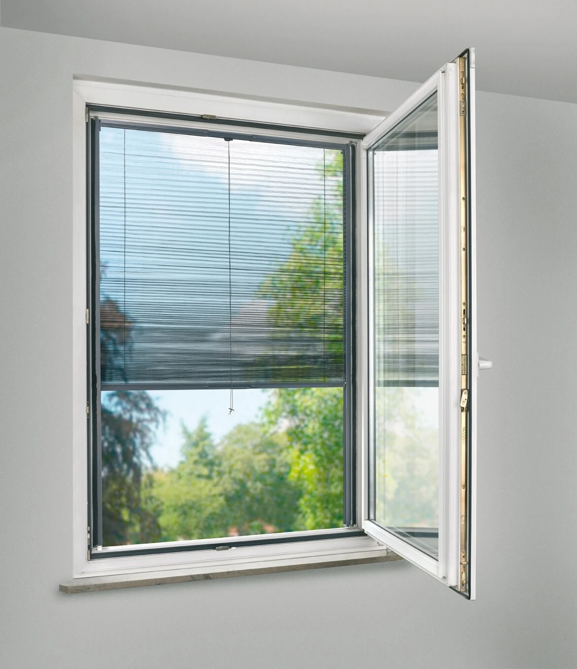 Die Klemmvorrichtungen werden am Fenster angebracht, diese beschädigen keine Fensterdichtungen und Rahmen. Das Insektenschutzplissee wird zwischen den Profilen diagonal eingeführt und rastet oben mit einem hörbaren Klicken ein. Durch das einfache Anbringen ohne zusätzliches Werkzeug spart man sich Zeit und Nerven. Die aufwendigen Arbeitsschritte wie Ausmessen, Bohren, Sägen, Feilen, Hämmern, Biegen sind bei unserem Fliegengitter Plissee nicht notwendig und vereinfachen die Montage erheblich – Die gewonnene Zeit kann nun viel sinnvoller genutzt werden.