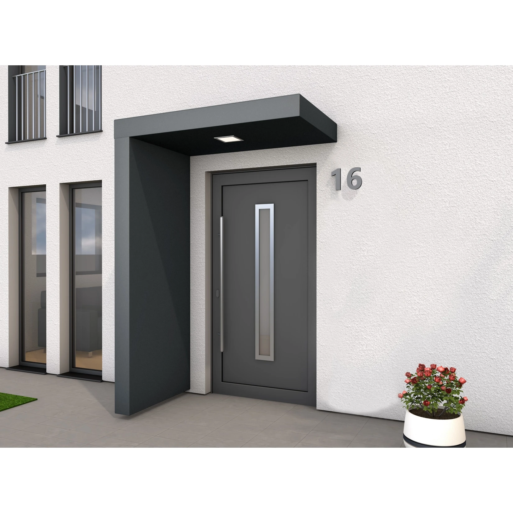 Mit dem Rechteckdach in markanter Optik erhalten Sie im Handumdrehen eine stylische und angesagte Optik. Das Vordach besteht aus anthrazitfarbenem, pulverbeschichtetem Aluminium und einer PU Schaum Füllung, so dass maximale Formstabilität gegeben ist.