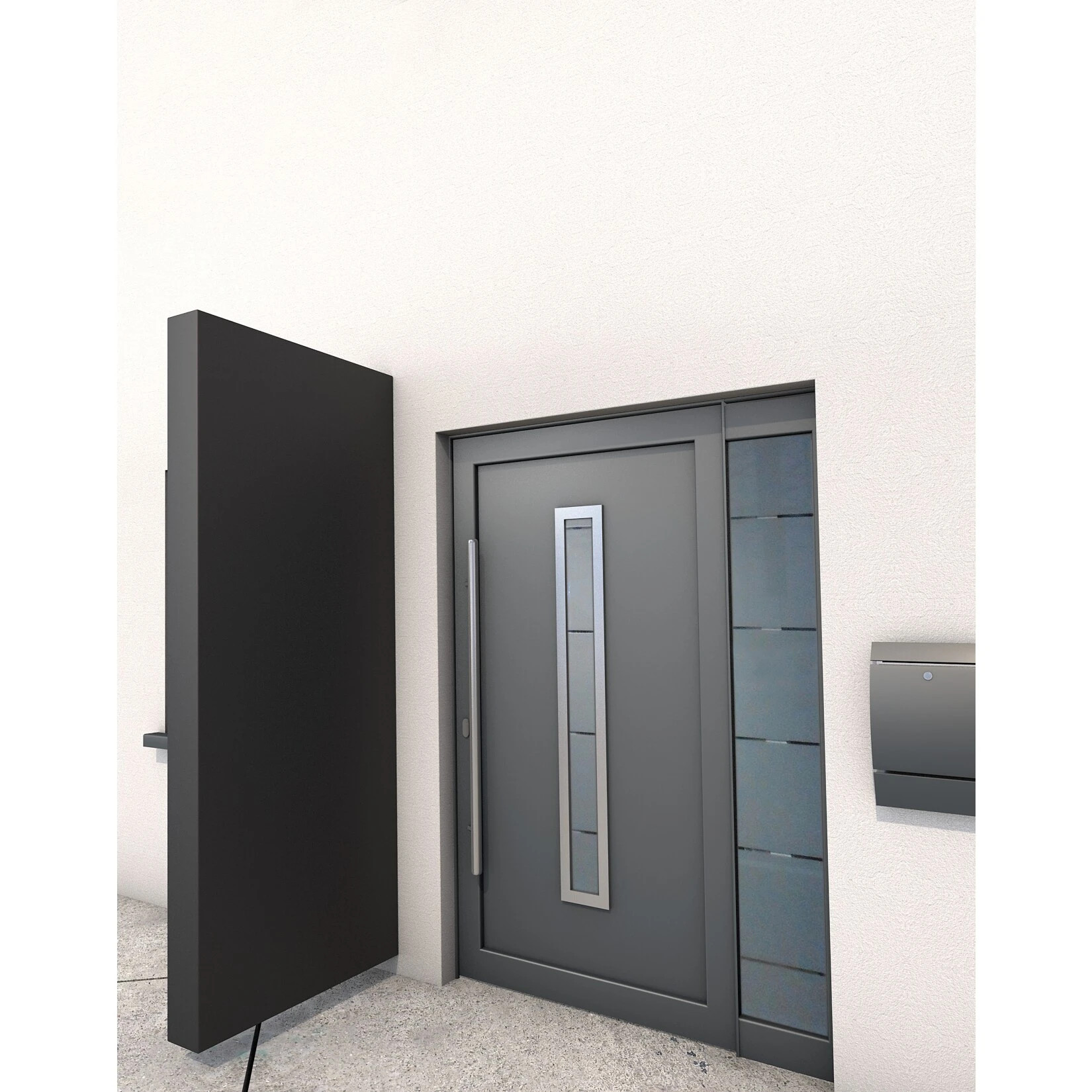 - Aus anthrazitfarbenem, pulverbeschichtetem Aluminium und PU Schaumfüllung