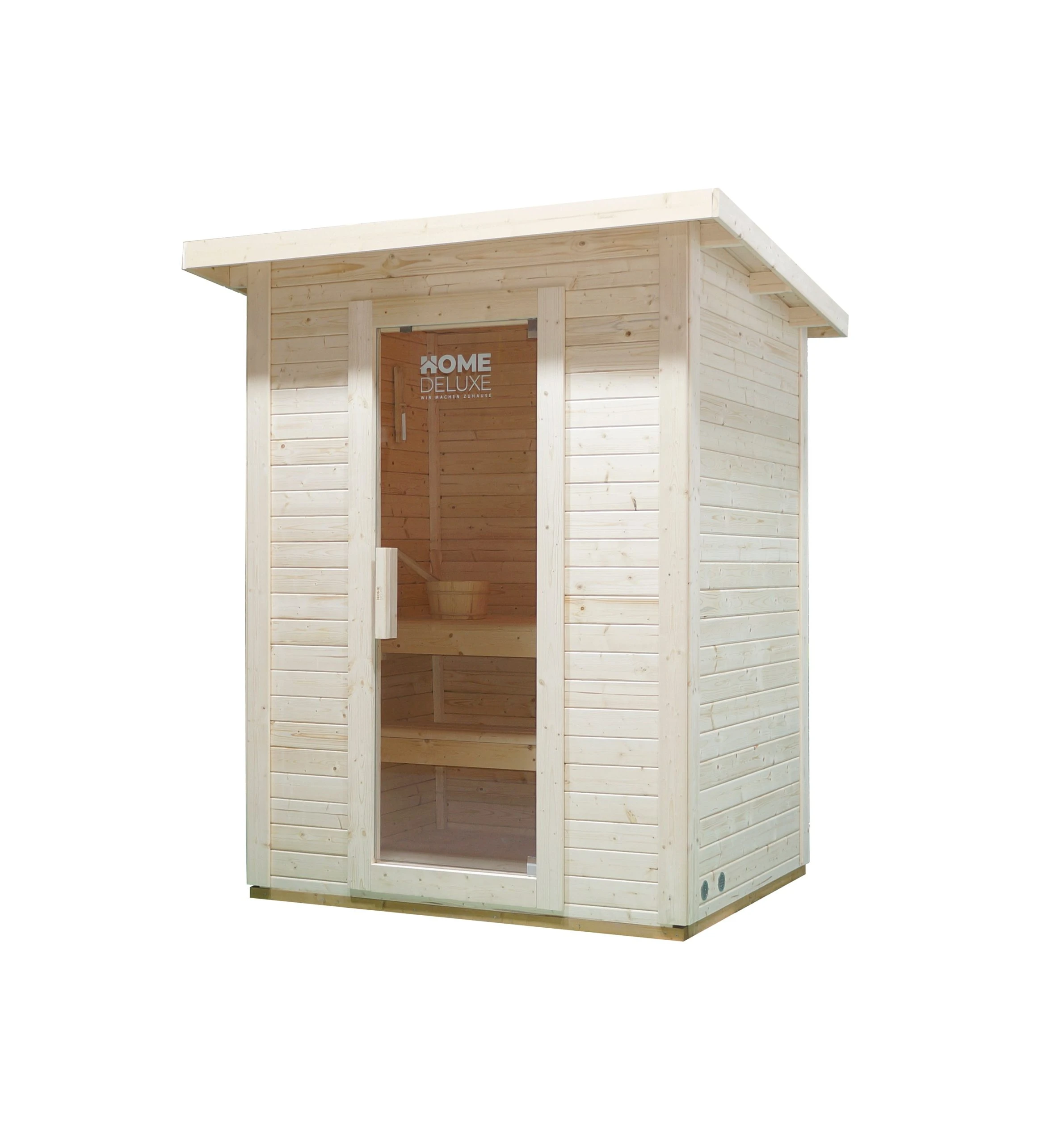 Im Innenraum bietet das Saunahaus Platz für bis zu 2 Personen. Entspanne ungestört in Deinem Garten und genieße in aller Ruhe Deine Wellness-Stunden. Dank des umfassenden Zubehörs kannst Du sofort nach dem Aufbau loslegen!