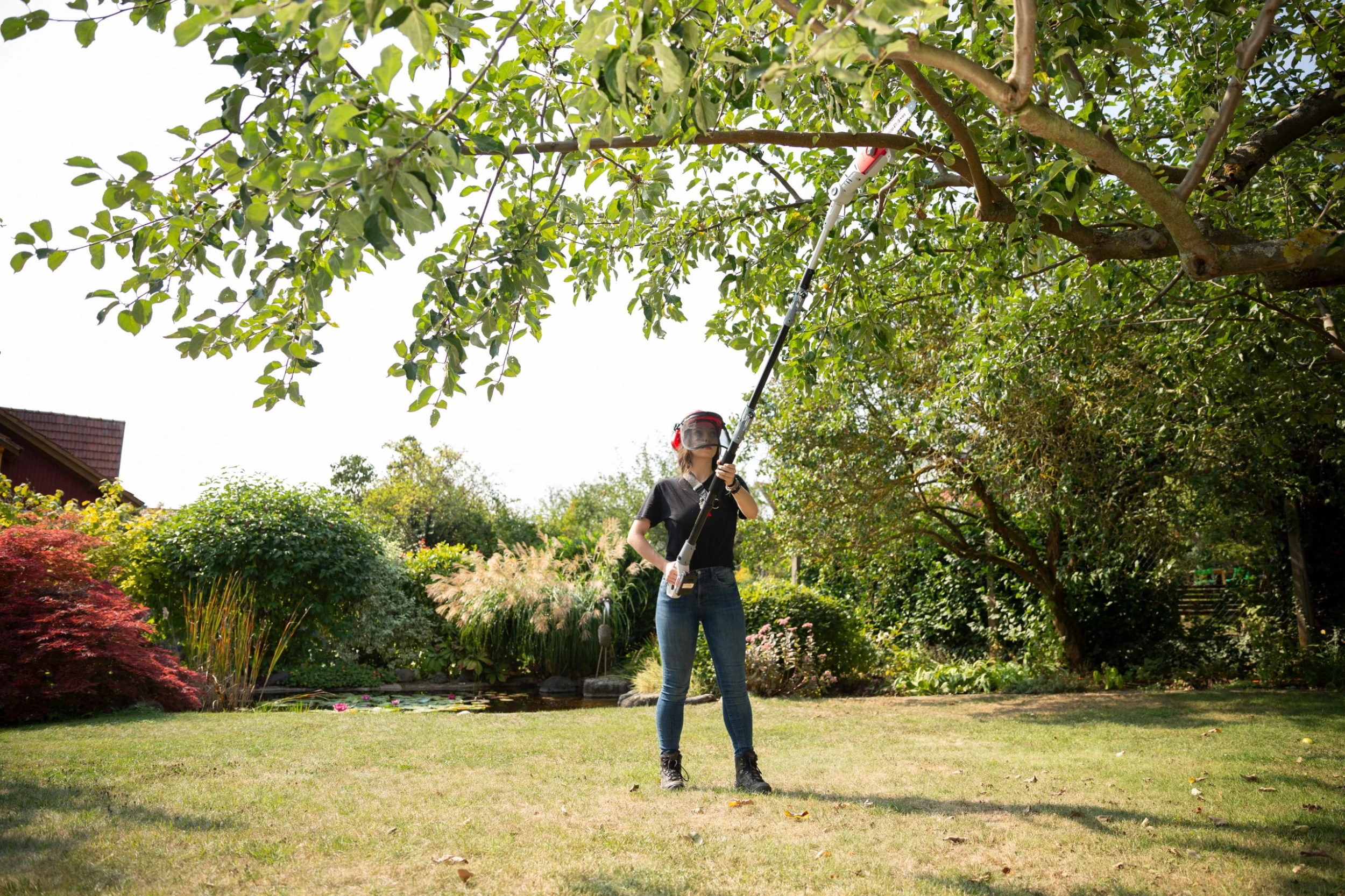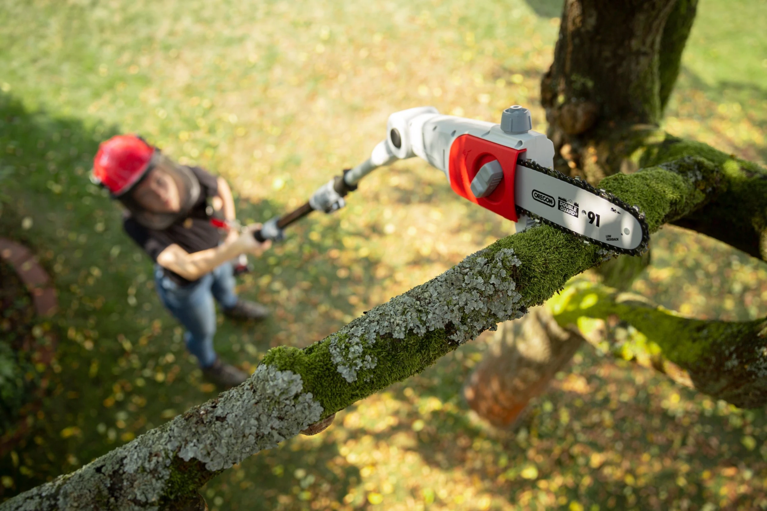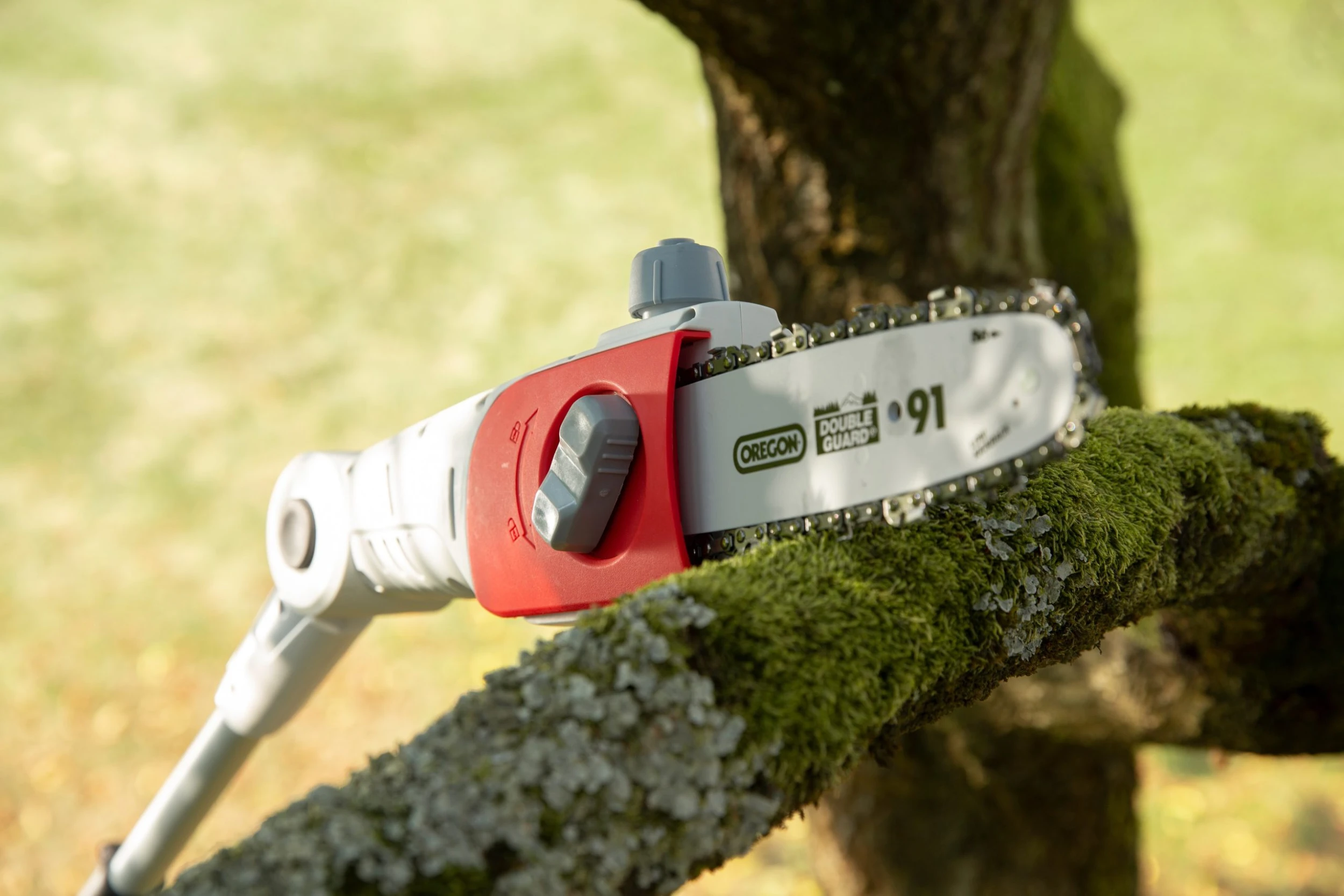 IKRA Akku Hochentaster ICPS 2020 (20 V / 2,0 Ah) mit Markenschwert und vibrationsarmer Sägekette von OREGON zum Schneiden von Ästen in Höhen von bis zu 4 Meter,