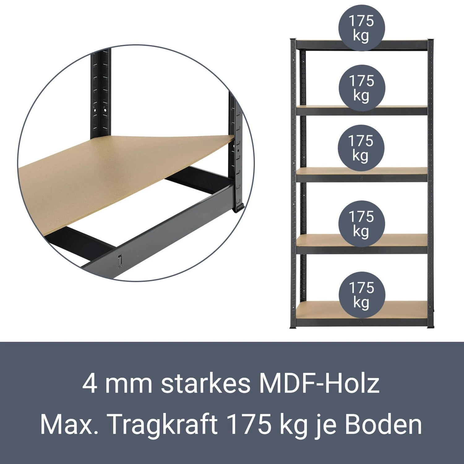 Die Steckregale besitzen jeweils fünf Einlegeböden aus umweltfreundlichem MDF-Holz. Die stabilen Fachböden dienen als praktische Ablagefläche zur Lagerung Ihrer Gegenstände. So ist alles ordentlich, übersichtlich aufbewahrt und stets griffbereit.