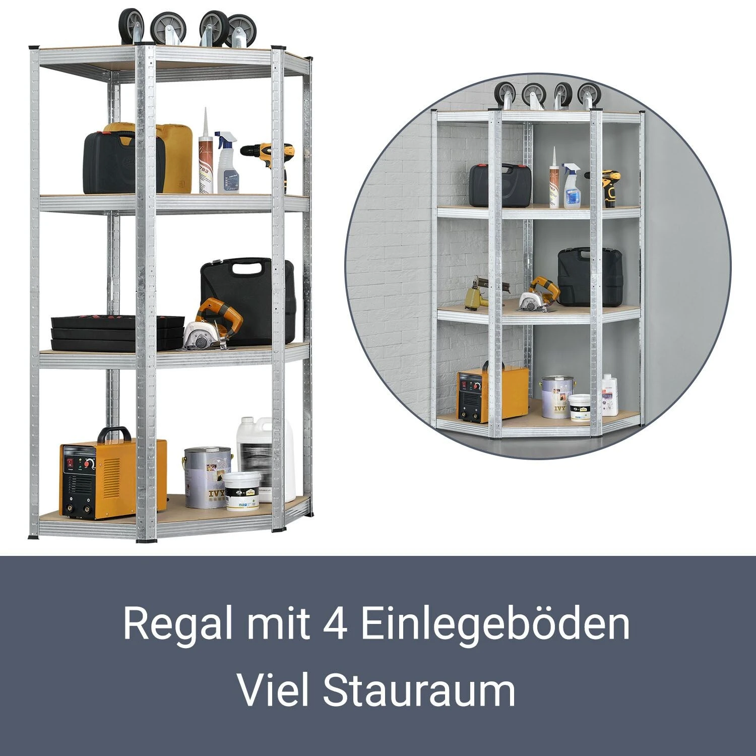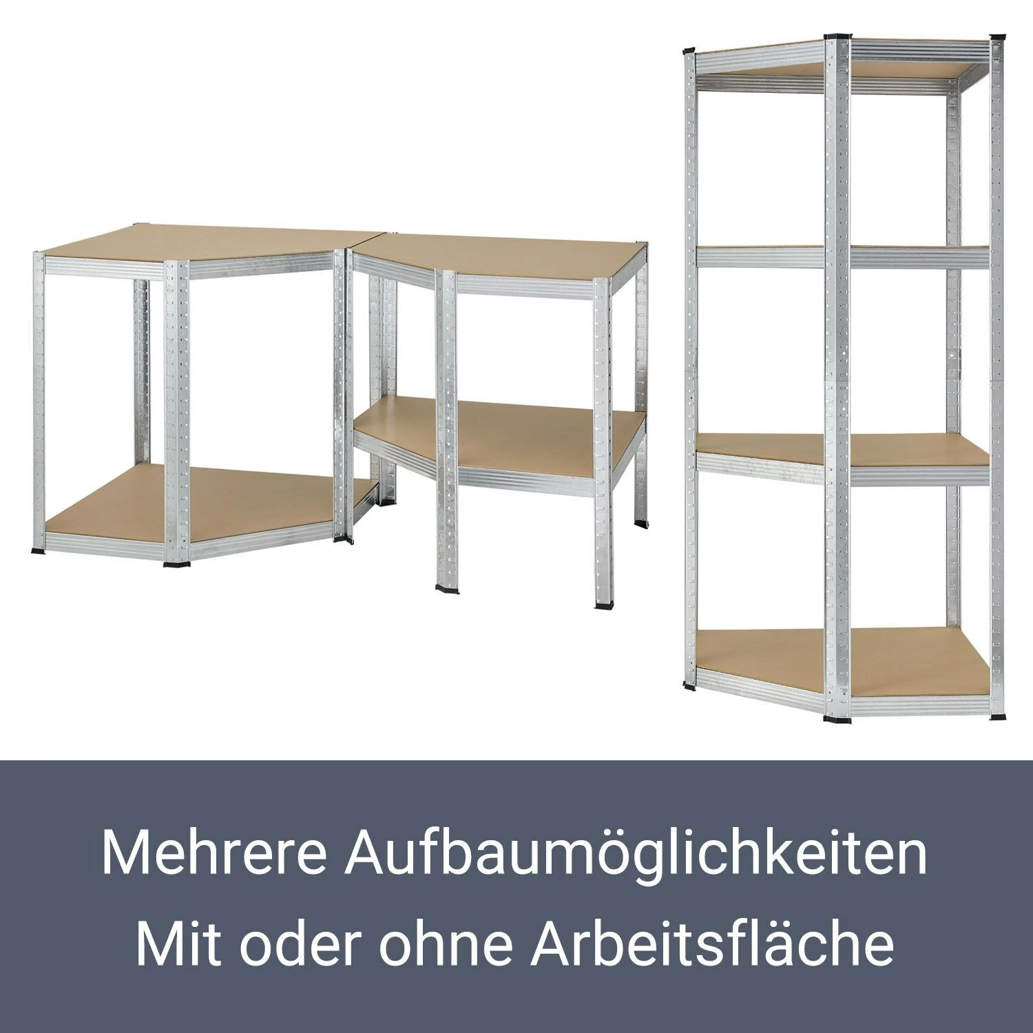 Ob Keller, Garage, Werkstatt oder Abstellkammer – mit dem praktischen Eckregal Corner Easy bringen Sie Ordnung in Ihr Leben. Das 75 x 40-75 x 160 cm große Schwerlastregal besteht aus verzinktem Metall und ist mit 4 stabilen Einlegeböden aus MDF-Holz ausgestattet. Ideal für die Aufbewahrung von Werkzeug, Gartenutensilien, Vorräten, Getränken und anderen Gegenständen. Das ausgeklügelte Stecksystem ermöglicht einen schnellen Aufbau ohne Bohren oder Schrauben. Durch die Kunststofffüße bleibt Ihr Fußboden vor unschönen Kratzern verschont.