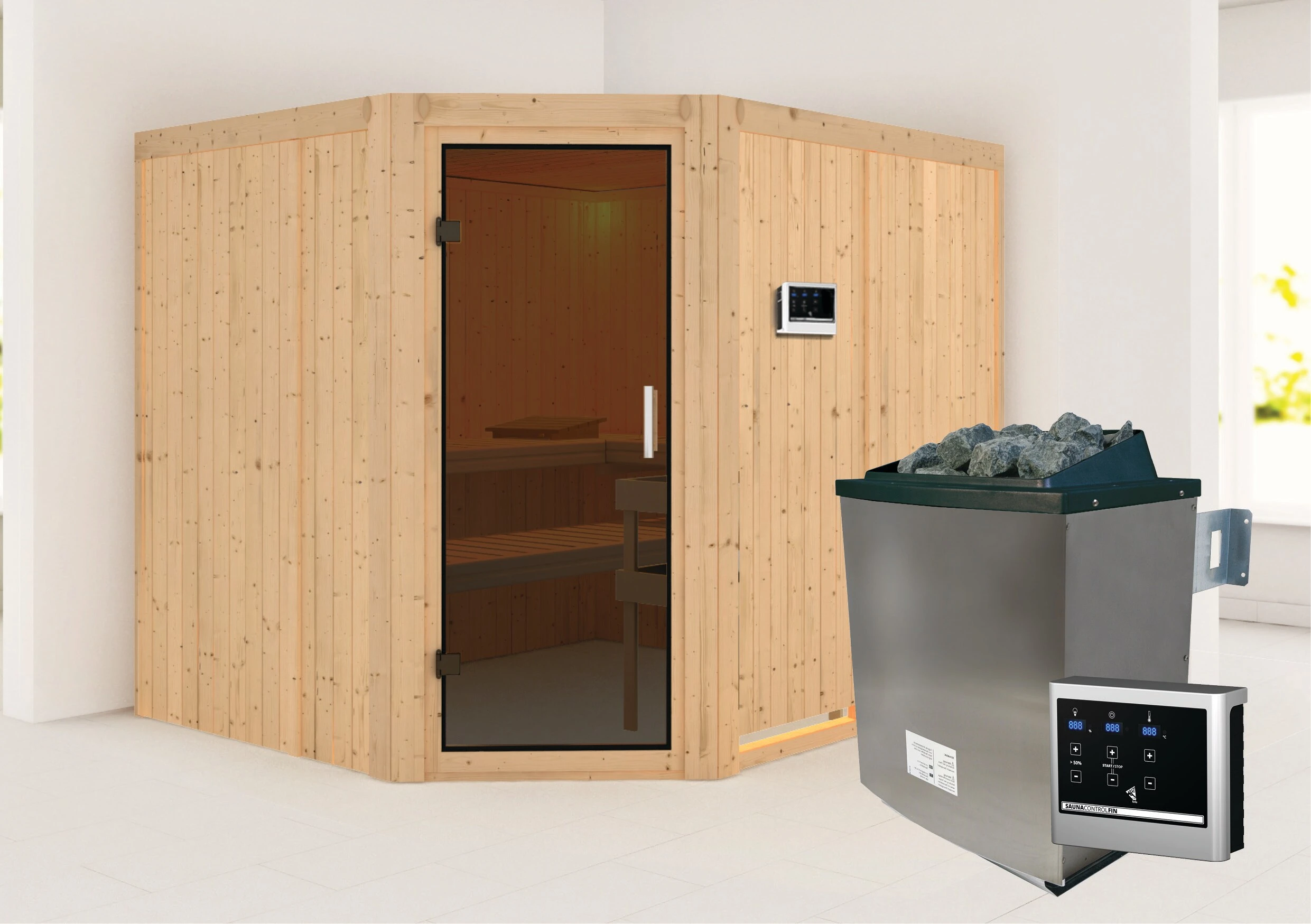 - inklusive rechts und links anschlagbarer Saunatür