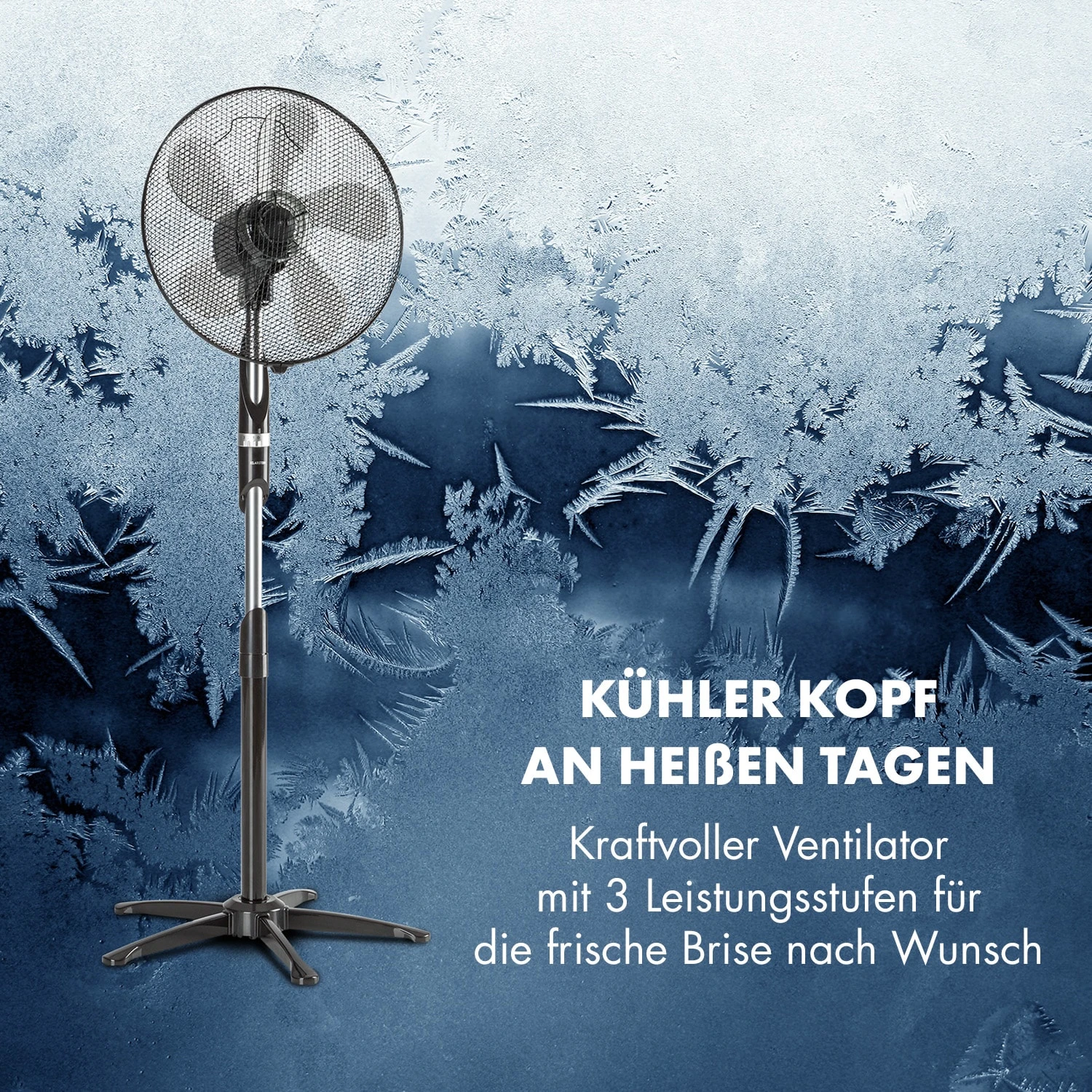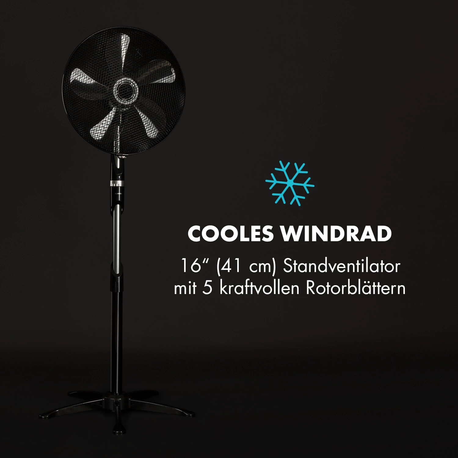 Klarstein Summer Vibe Standventilator Ventilator Standlüfter | 16″ Rotor (41 cm) mit 5 Flügeln | 55 W | 3 Windgeschwindigkeiten | Luftdurchsatz: 2040 m³/h | Oszillation: 65° | Rotorkopf 30° neigbar | Höhenverstellbar: 30 cm | einfache Bedienung mit Grip-Shift | schwarz