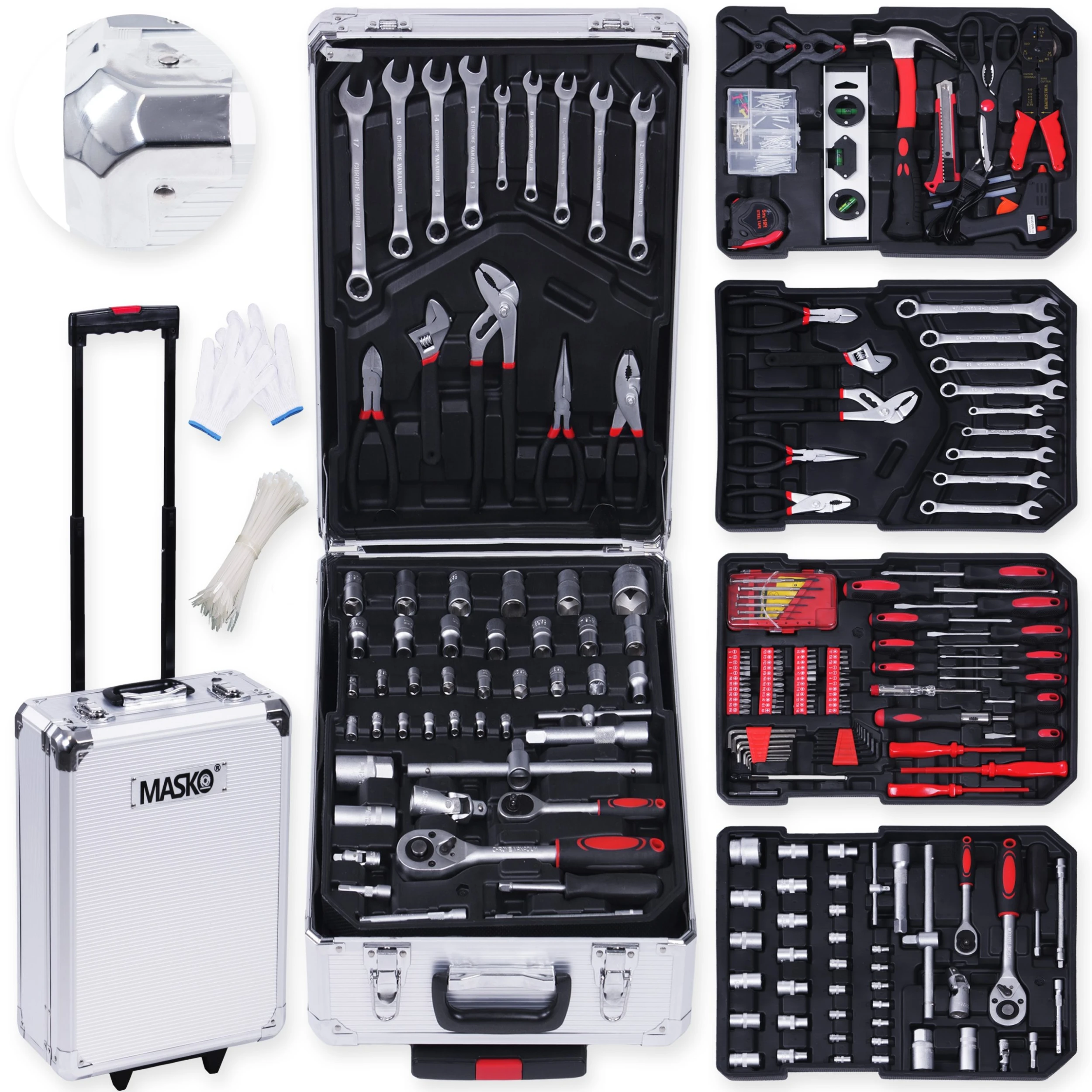 Mit dem MASKO® Werkzeugkoffer entscheiden Sie sich für einen tollen Alu Werkzeug-Trolley mit einem 969-teiligem Werkzeugsortiment. Der Koffer ermöglicht Ihnen mobil und schnell einsatzbereit zu sein. Der Werkzeugkoffer ist praktisch, funktional und super zu transportieren. Somit haben Sie immer alles ordentlich sortiert und jederzeit griffbereit: Sie müssen also nie wieder suchen oder in wühlen bis Sie das passende Werkzeug gefunden haben. Sie können den Koffer jederzeit abschließen so dass Ihr Werkzeug bis zum nächsten Einsatz sicher und geschützt ist.