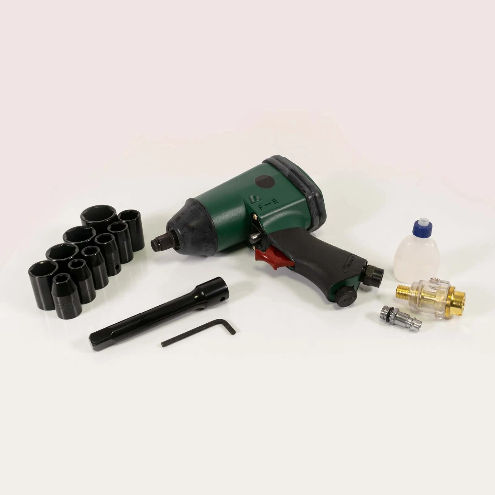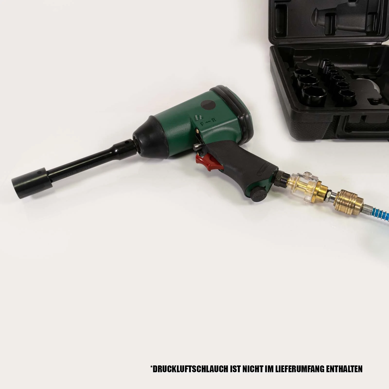 Unser druckluftbetriebene Schlagschrauber eignet sich zum Lösen und Festziehen von Schraubverbindung bei Montage- oder Reparaturarbeiten sowie zum Lösen von Bolzen beim Radwechsel.