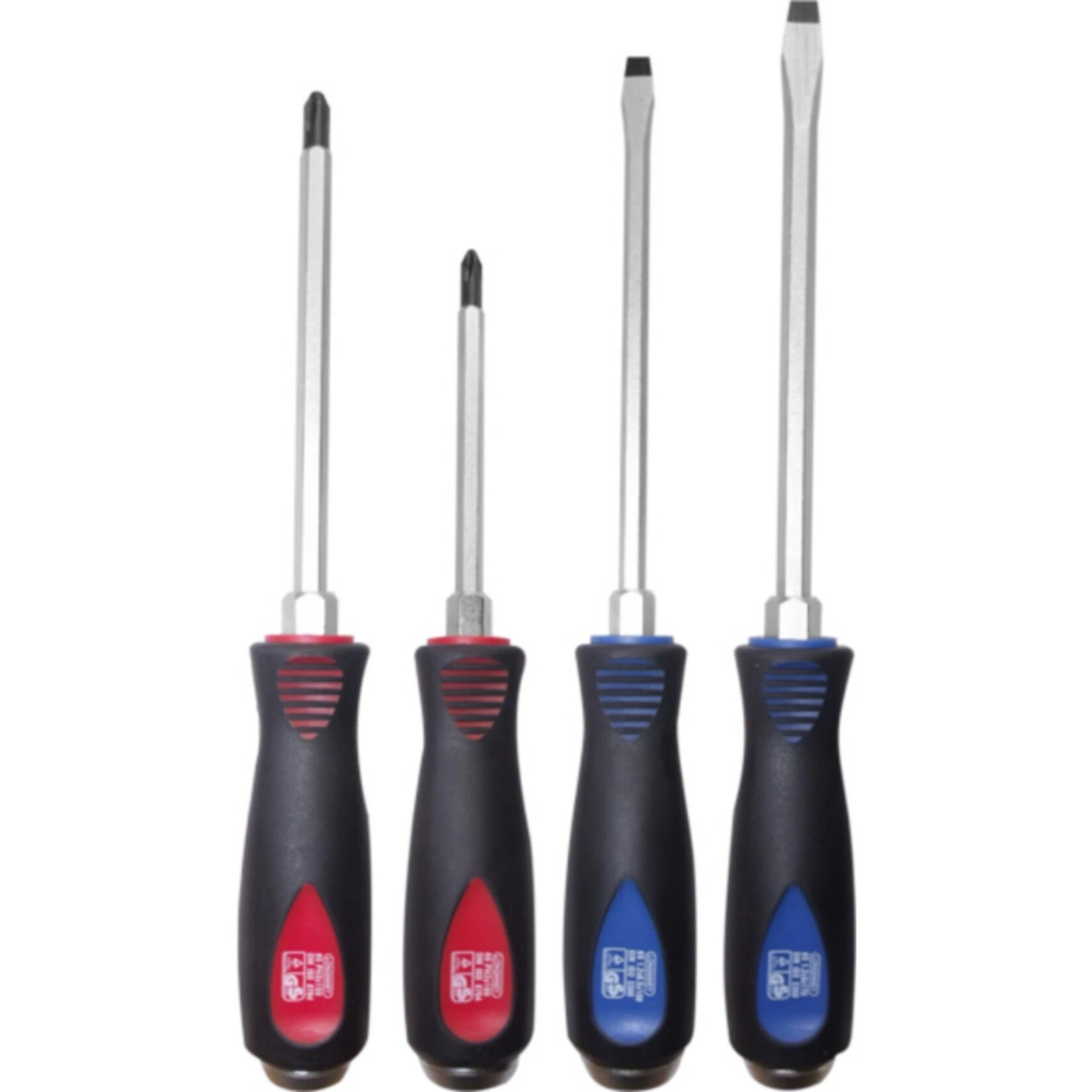 as Mauk Schlagschraubenzieherset ist aus SNCM und V legiertem Stahl gefertigt. SNCM+ V =Ni-Cr-Mo+Vanadium = SAE8660 + V ist ein guter Stahl mit extremer Härte und Zähigkeit. Ideal für Werkzeuge mit Drehmoment wie Schraubenzieher, Bohrer. Aufgrund dieser Eigenschaften darf dieses Schraubenzieherset als Meißel verwendet werden. Mit extra gehärteten, magnetischen Schraubenzieherspitzen. Mit diesem Schrauberzieherset können Sie nicht nur schrauben, Sie können es auch zum Meißeln und damit zum Entfernen von Fliesen, Kacheln verwenden. Die ergonomisch geformten Griffe sorgen für sehr guten Halt beim Arbeiten. Durch den kompletten Stahlkern mit Schlagkopf können die Schraubenzieher auch als Meißel oder Schlagwerkzeug eingesetzt werden.