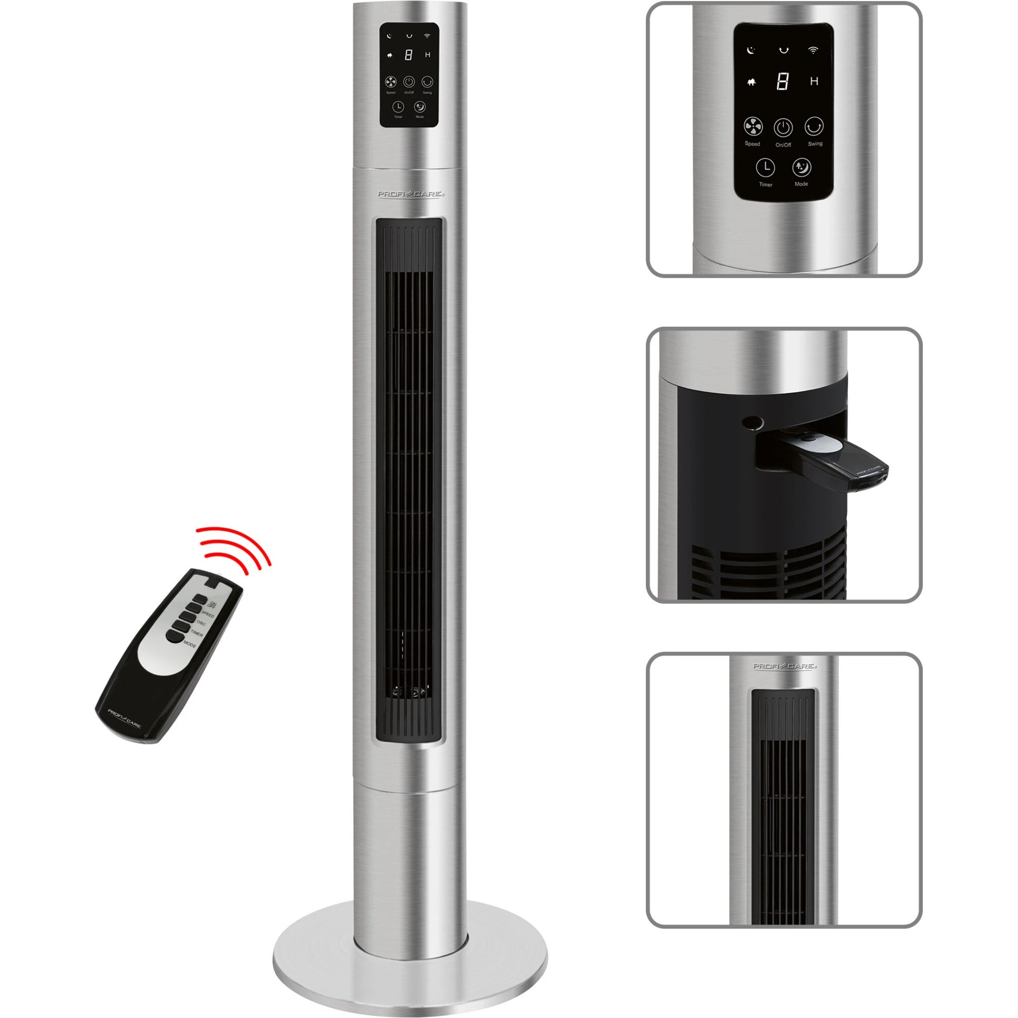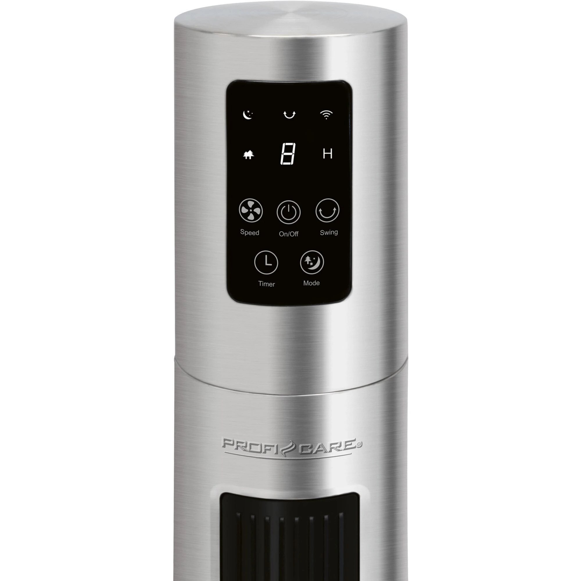 Der Edelstahl-Turmventilator PC-TVL 3090 von ProfiCare überzeugt im Design und der Leistung. Sechs Geschwindigkeitsstufen sorgen für Komfort Zuhause oder im Büro. Zusätzlich kann der Ventilator einen natürlichen Windmodus simulieren – Nature: Simuliert eine natürliche Windbewegung, Sleep: Sorgt für Entspannung mit einem variantenreichen Windspiel. Der Ventilator lässt sich bequem im heimischen WLAN oder über das Internet von unterwegs steuern. Mit Smartphone oder Tablet-PC App kann man auf Zusatzfunktionen zugreifen. Besonders smart: Der Ventilator ist mit Voice Control ausgestattet und lässt sich per Alexa oder Google Assistant steuern.