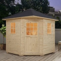 Artsauna Saunakabine Espoo200 Premium Mit Harvia Ofen – 5 Personen – Hemlock Holz & Glasfront