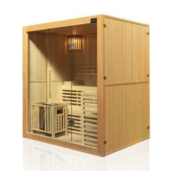 Dewello Finnische Traditionelle Sauna SARNIA PLUS 180cm X 140cm Inkl. 6 KW Harvia Ofen, Zubehör