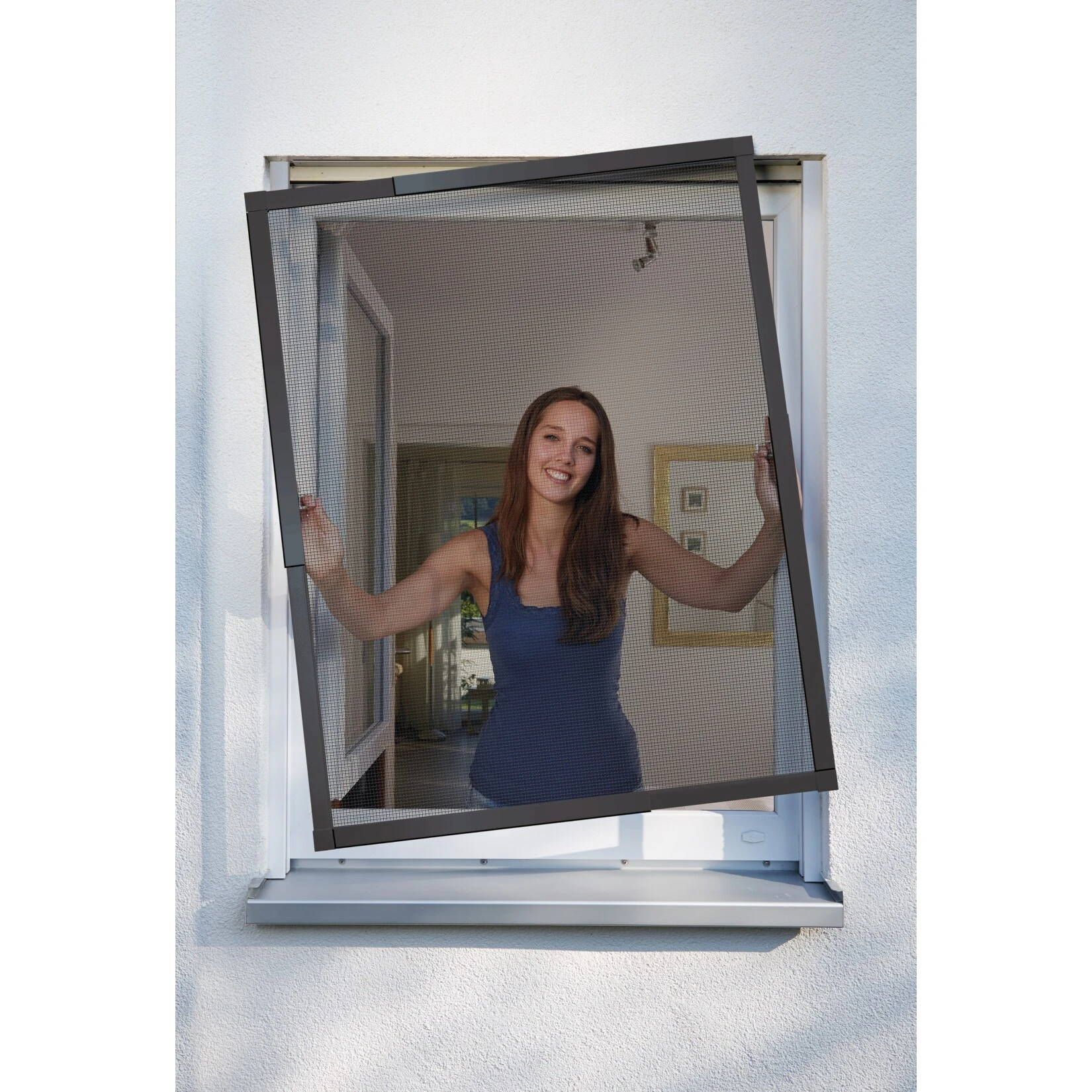 Ihr Fenster bleibt unversehrt, denn dieses Insektenschutzgitter wird einfach in den Fensterrahmen eingehängt und lässt sich jederzeit spurlos wieder aushängen.
