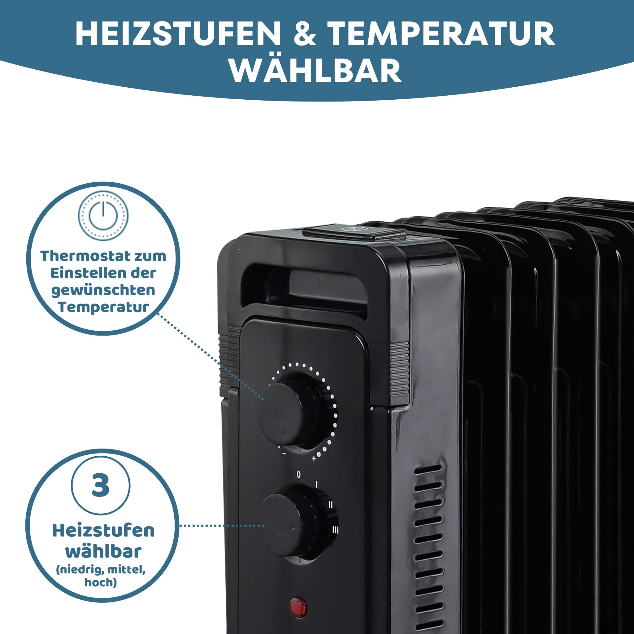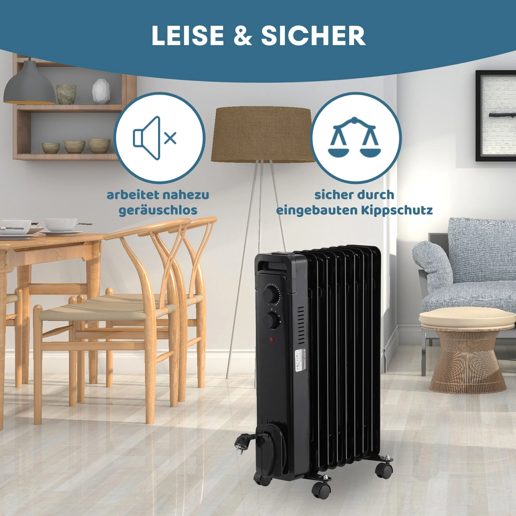 MOBIL & KOMPAKT: Durch die vier verbauten Rollen und die kompakten Maße ist unser Ölradiator sehr mobil. So kann er ganz einfach in verschiedenen Räumen genutzt werden.