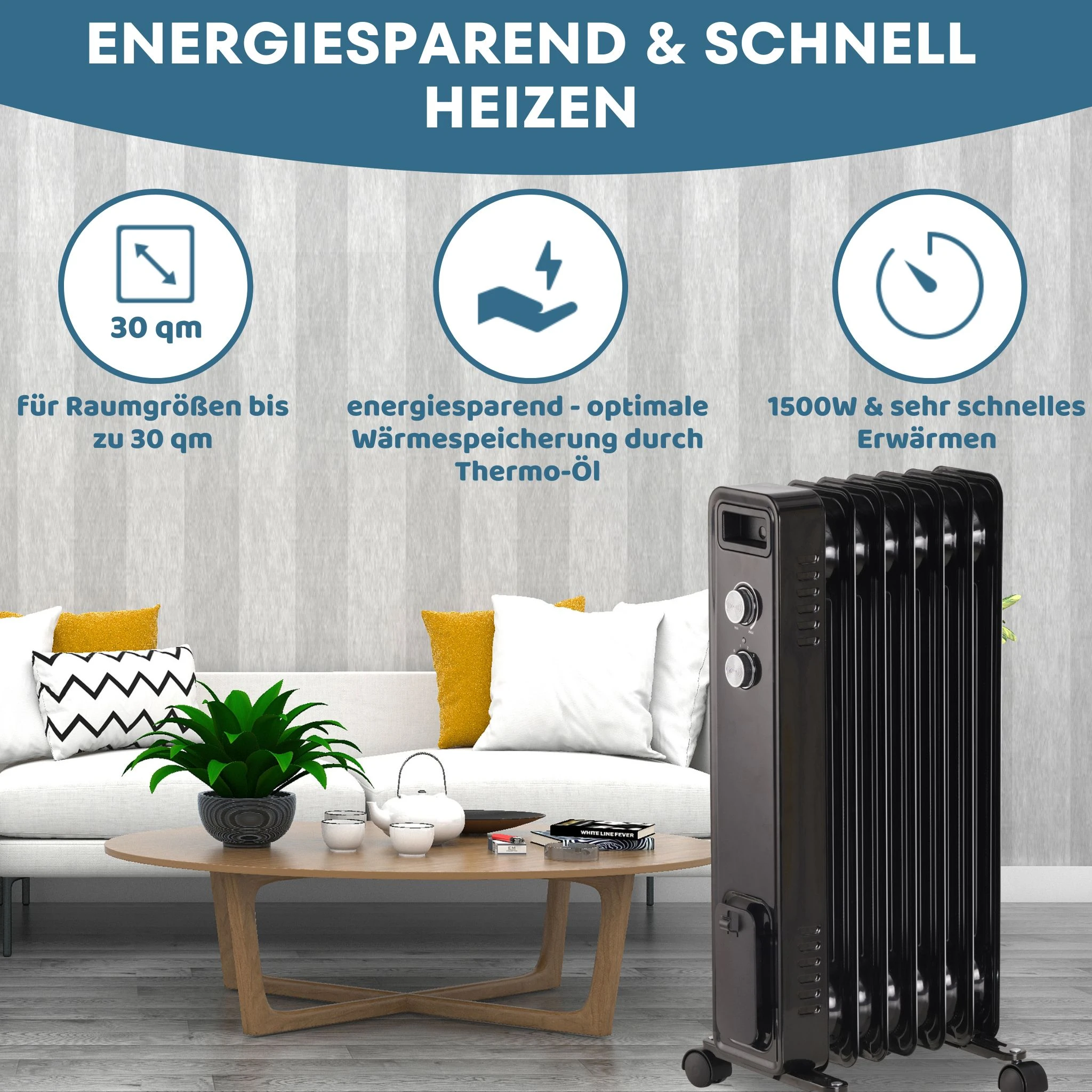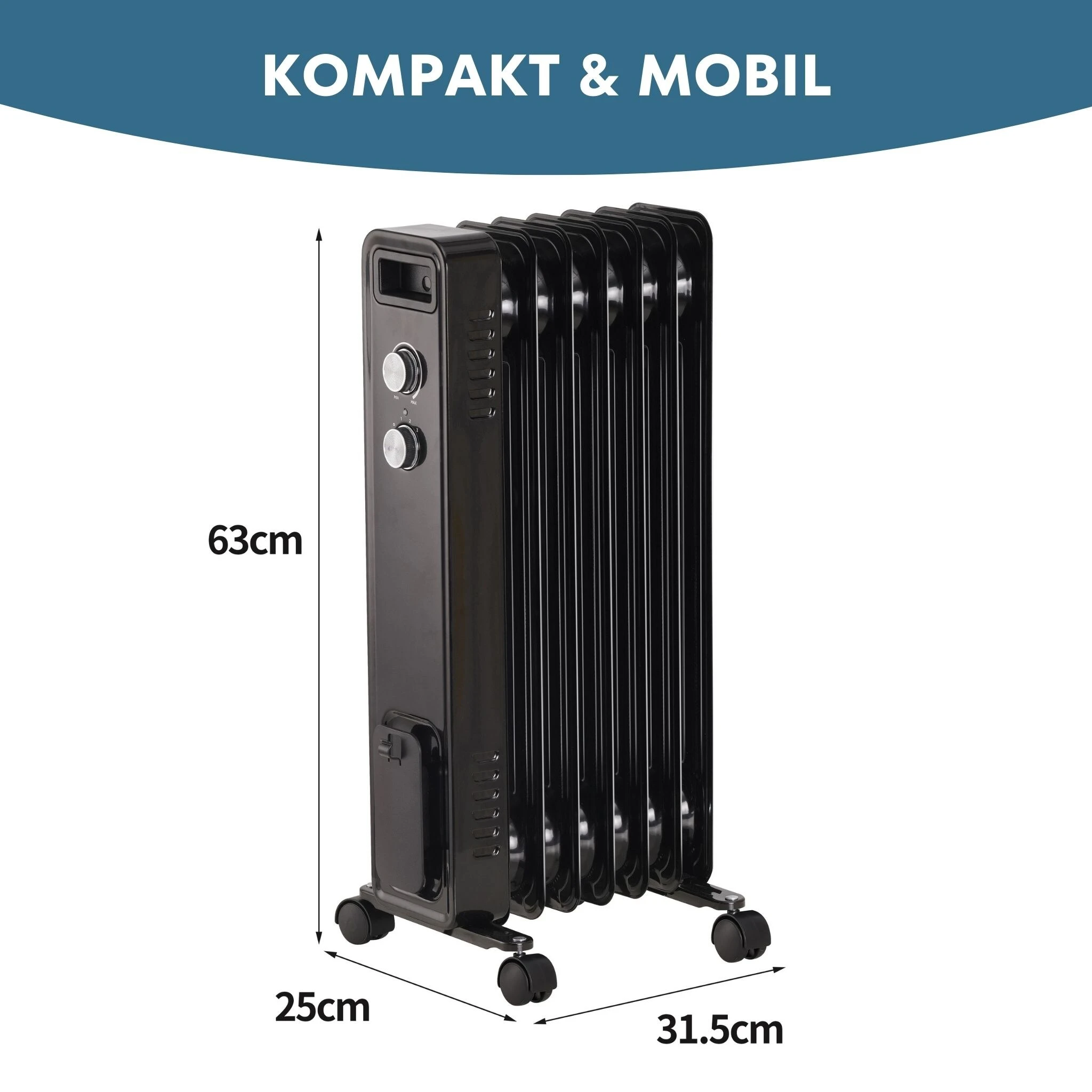 MOBIL & KOMPAKT: Durch die vier verbauten Rollen und die kompakten Maße ist unser Ölradiator sehr mobil. So kann er ganz einfach in verschiedenen Räumen genutzt werden.