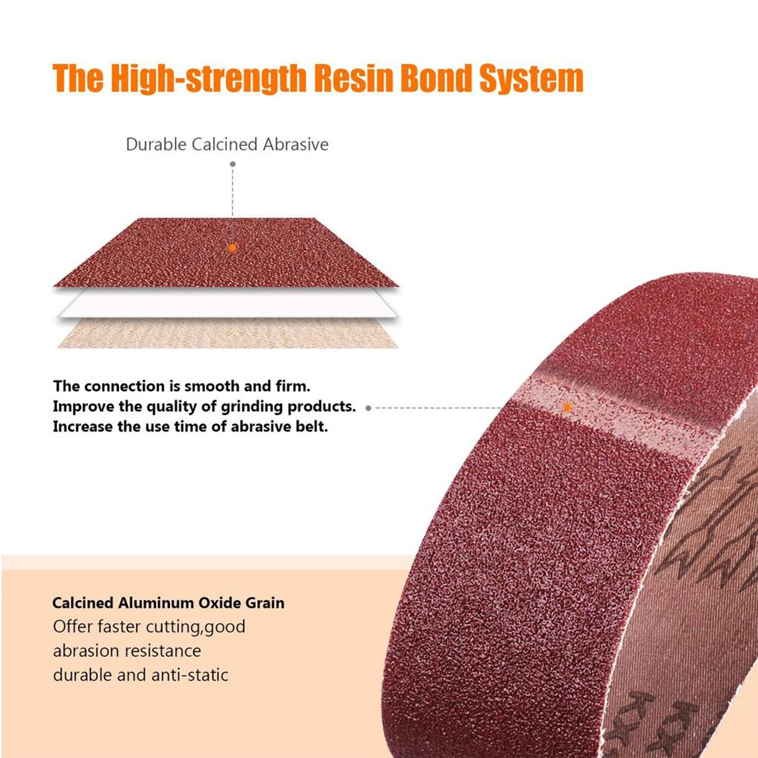 ?VERBESSERTES MATERIAL?Das Schleifband ist aus hochwertigem offenem Mantel Aluminiumoxid-Korn, verfügt über gute Abriebfestigkeit, antistatisch und Anti-Verstopfung.