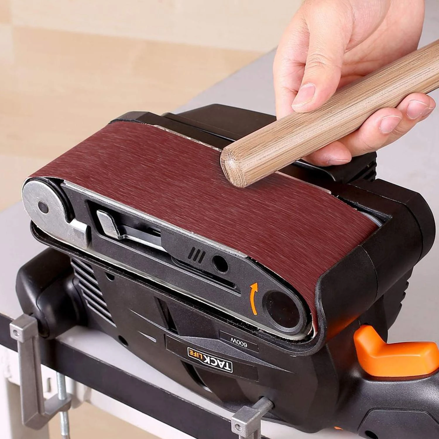 ?HINWEIS?Bitte achten Sie auf den Pfeil auf dem Band, halten Sie beide Pfeile auf dem Band und Tacklife PSFS1A Bandschleifer in der gleichen Richtung, vermeiden Sie Kratzer auf dem Brett, halten Sie das Schleifband eine lange Lebensdauer.