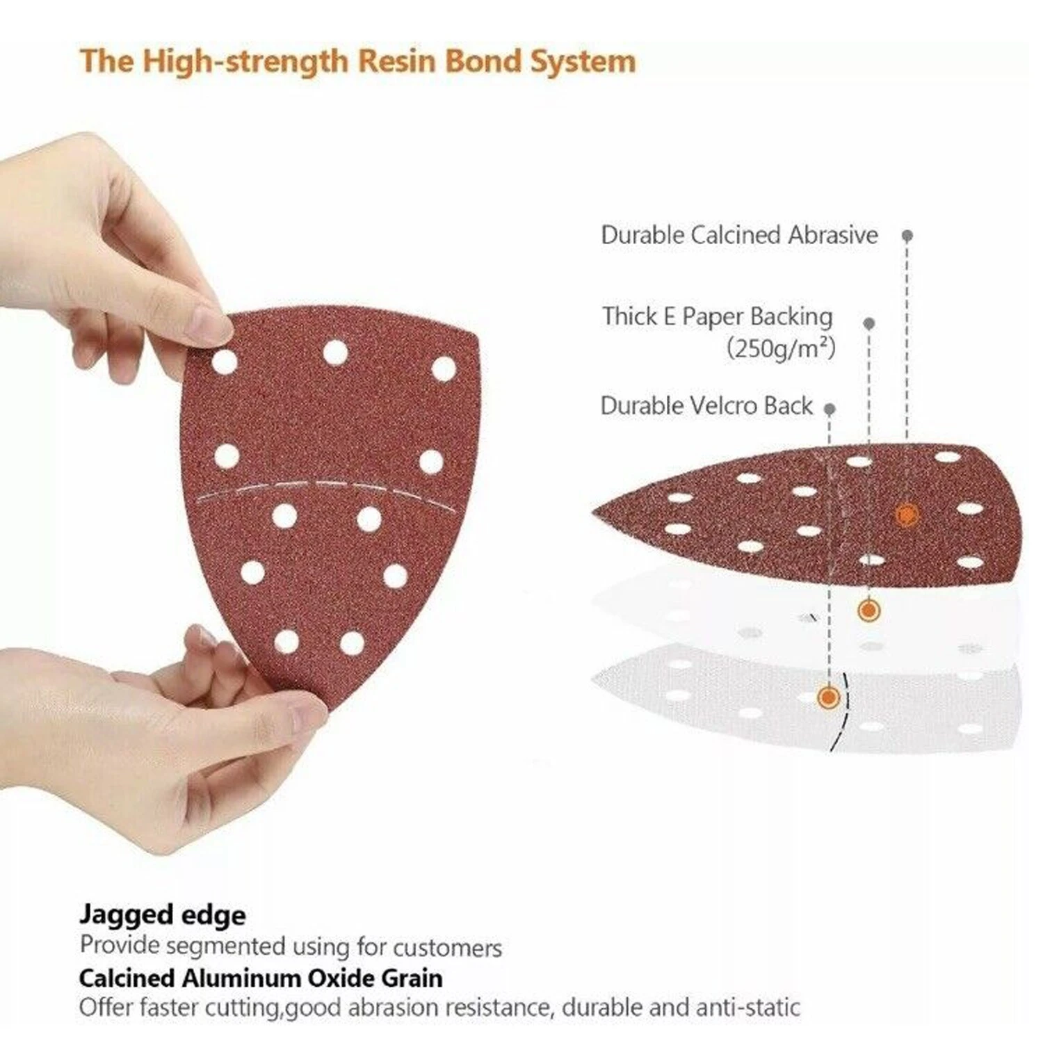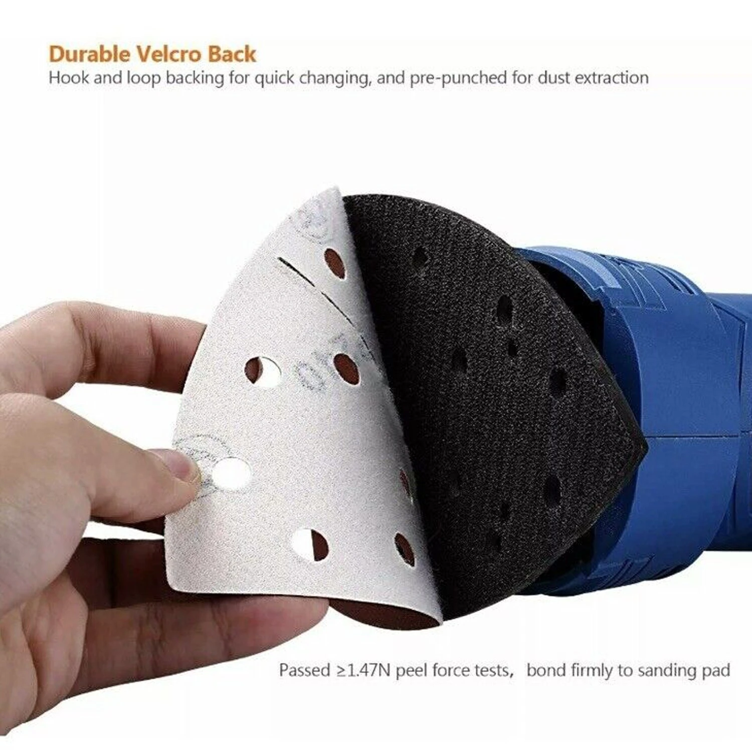 NEUES DESIGN – Mit gezackten Teilen können die Schleifblätter leicht in zwei Hälften geteilt werden. Mit Haken und Riemen, einfach und schnell zu installieren.