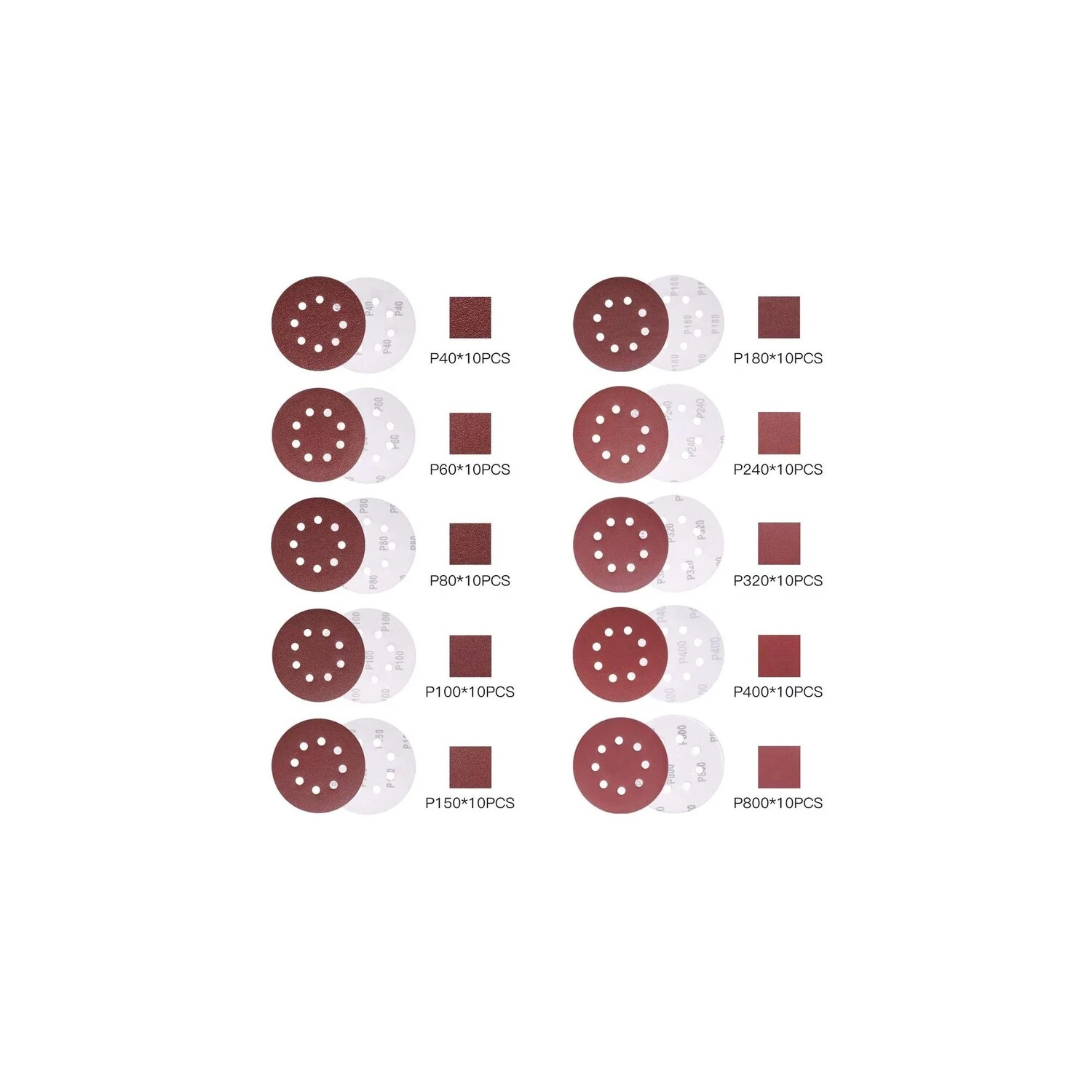100 PACK – Eine Vielzahl von Körnungen erfüllt alle Ihre Bedürfnisse für verschiedene Materialien und Projekte, 10pcs von jedem 40, 60, 80, 100, 150, 180, 240, 320, 400, 800 Körnungen.