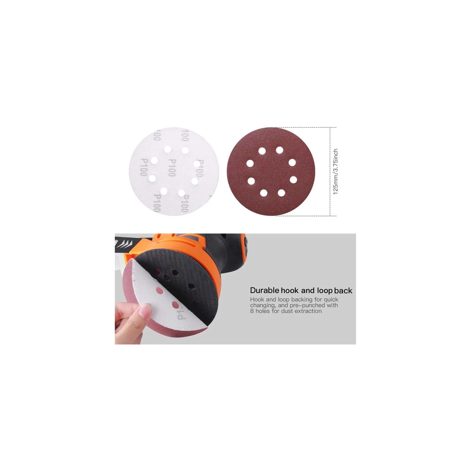 Tacklife, die sich nur mit der Entwicklung der Werkzeuge beschäftigt. Wir verpflichten uns, qualitative Werkzeuge zu verwenden, um die Lebensqualität zu verbessern. 100Pcs Schleifscheiben, treffen mehr Ihre Bedürfnisse für verschiedene Aufgaben. Geeignet für alle 5-Zoll 8-Loch Exzenterschleifer, kann es für Holz, Glasfaser, Wand Polieren und Rostentfernung auf Metalloberflächen verwendet werden. Hochwertiges Aluminiumoxid-Material mit offener Schicht ist verschleißfest und langlebig. Hohe Festigkeit X Tuch Basis bietet gute Zähigkeit, bietet eine lange Lebensdauer. Klettverschluss auf der Rückseite für einen schnelleren und einfacheren Wechsel des Schleifpapiers. 8 Löcher für einen leistungsstarken Staubsammeleffekt.