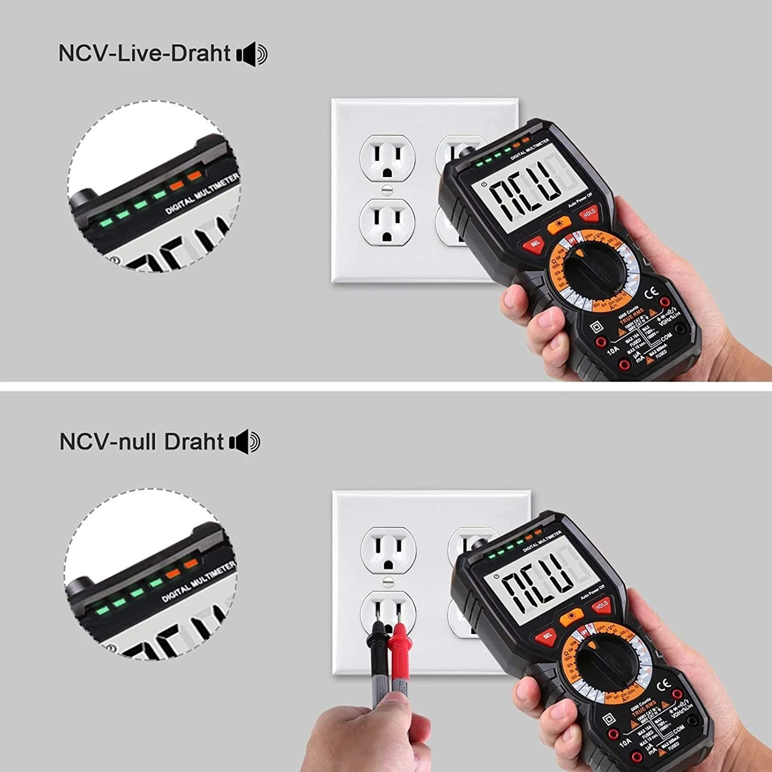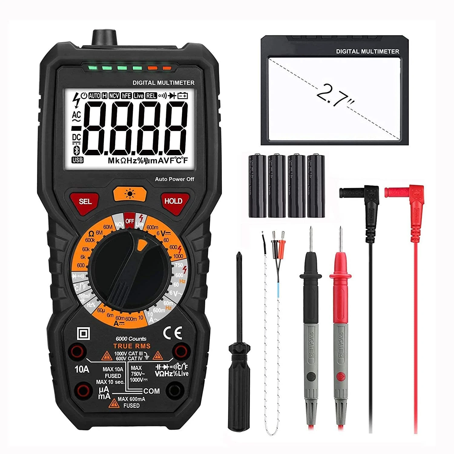 Digital Multimeter, Strommessgerät mit 6000 Counts, True RMS, Temperaturmessung, Durchgangsprüfung, Außenleiter-Identifizierung, Hintergrundbeleuchtung