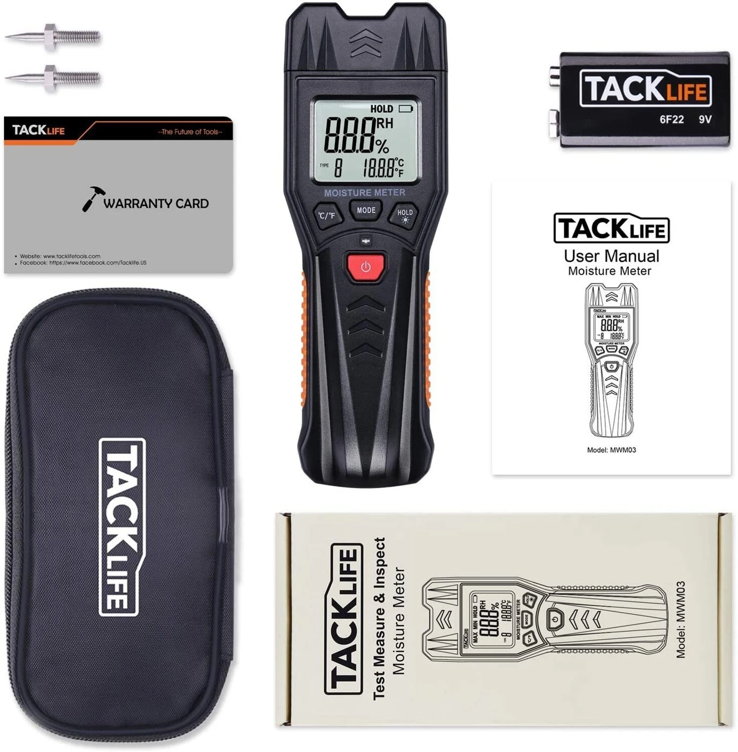 Tacklife Digitales Feuchtigkeitsmessgerät MWM03 — Zuverlässige Holzqualitätsbeurteiler & Gebäudeumweltmonitore 3-in-1 Pin-Typ Präzise Feuchtemessung