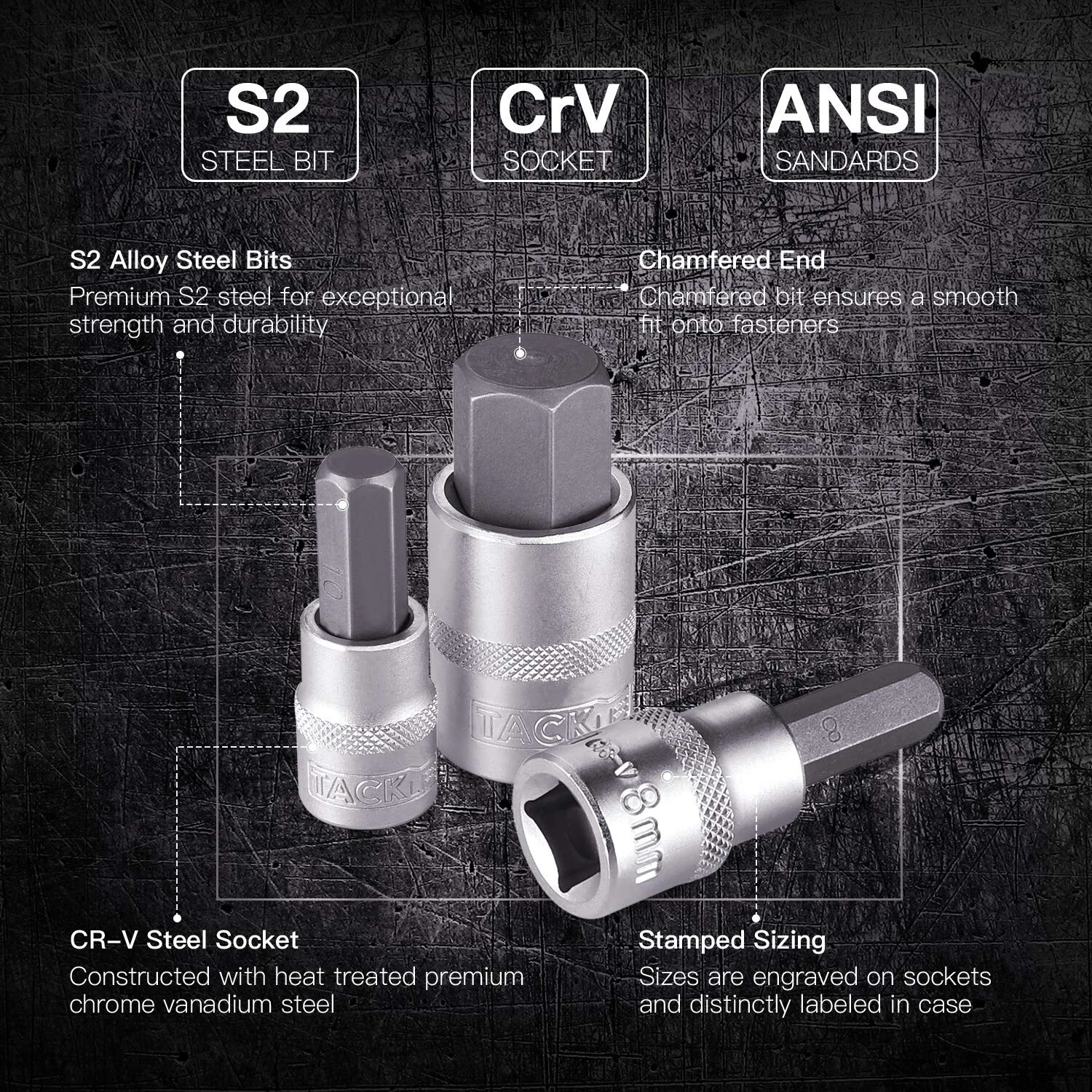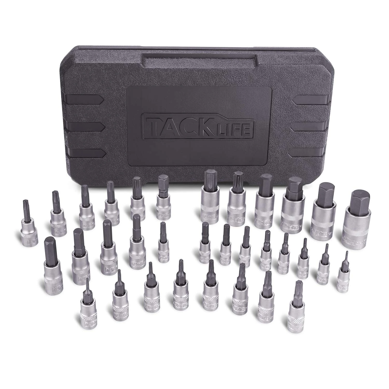 TACKLIFE HBS1C 33 Stücke Torx- und Sechskant-Einsätze 1/4″ 3/8″ 1/2″ S2 und Cr-V Stahl alle im stabilen Aufbewahrungskoffer