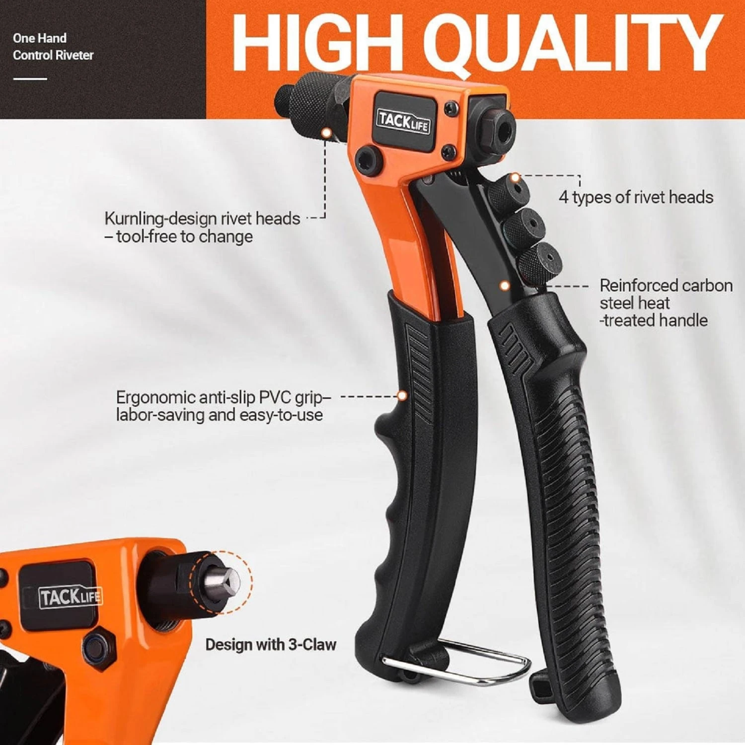 Einhand-Nietwerkzeug: Ergonomisches Design, rutschfeste, gepolsterte Handgriffe, thermoplastisches Gummimaterial (TPR) für maximale Passform und Komfort.