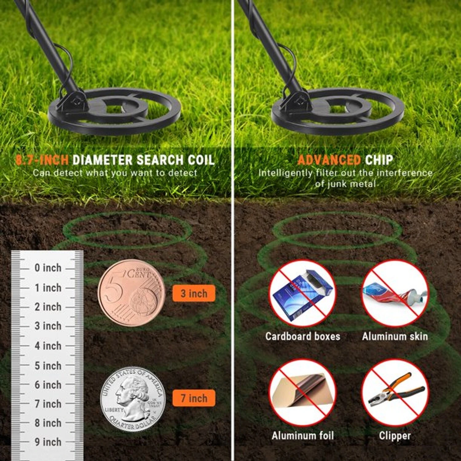 WASSERDICHTE SUCHSPULE MIT HOHER EMPFINDLICHKEIT – Die wasserdichte 8-Zoll-IP68-Suchspule in Verbindung mit dem verstellbaren Vorbau (41 “-53”) ermöglicht es Ihnen, sie unter Wasser zu verwenden, besonders geeignet für Outdoor-Aktivitäten, am Strand oder im Bach. Natürlich können Sie es auch verwenden, um mit Ihren Kindern Erkennungsspiele zu spielen. (HINWEIS: Die Steuerbox ist nicht wasserdicht)