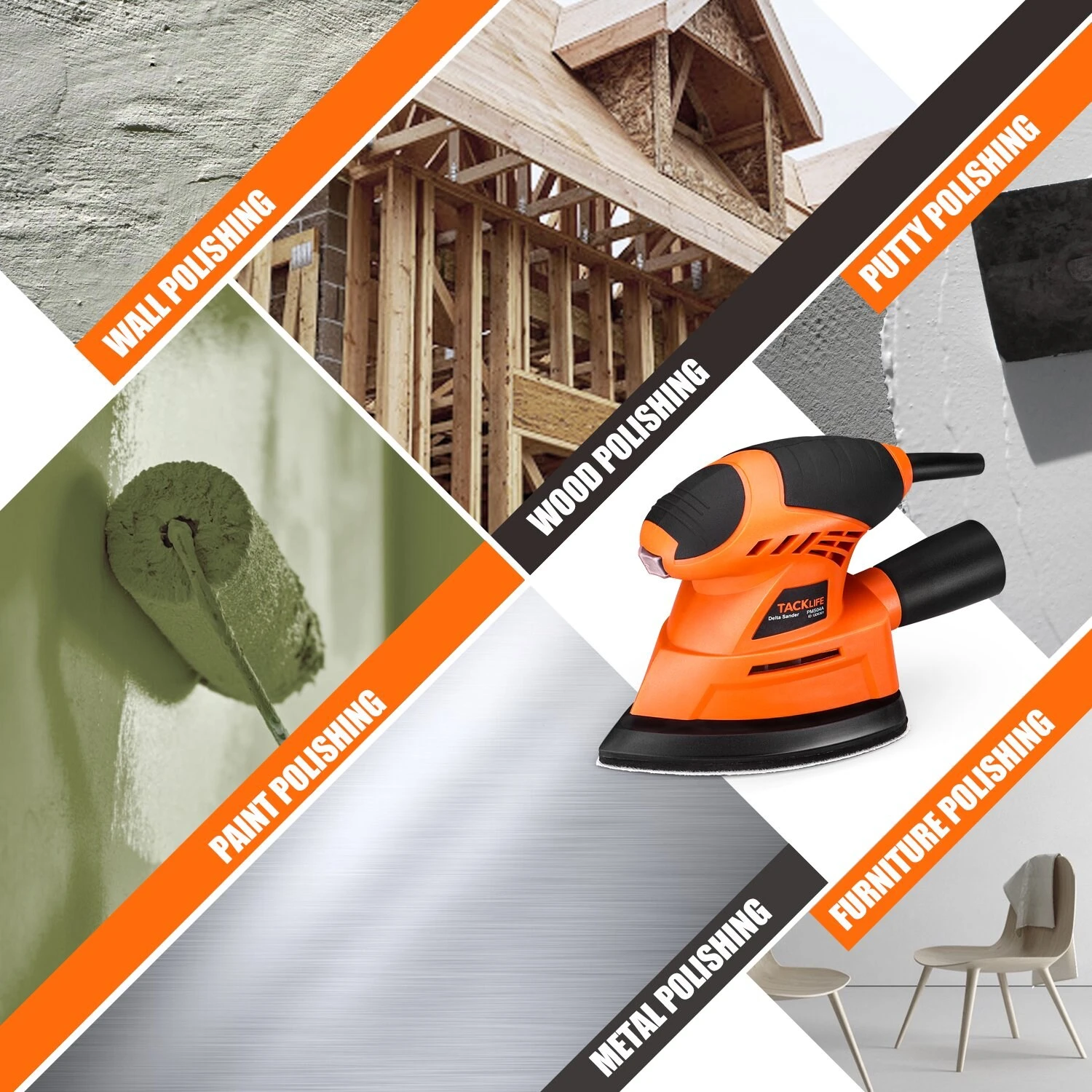 Wir bei Tacklife haben uns zum Ziel gesetzt, die besten Produkte herzustellen, die unsere Kunden dazu inspirieren, einen bequemeren und sichereren Lebensstil zu führen. TACKLIFE PMS02B Detail Sander 1.67A, DIY Leiser und effizienter 1,67 Ampere Gleichstrommotor kann 12.000 OPM liefern. Dieser um 360° drehbare Maus-Detailschleifer ist langlebig und kann unter verschiedenen Schleifbedingungen eingesetzt werden. Das Klett-Schleifpapier ermöglicht eine breitere Anwendung und bietet Heimwerkern mehr Möglichkeiten.