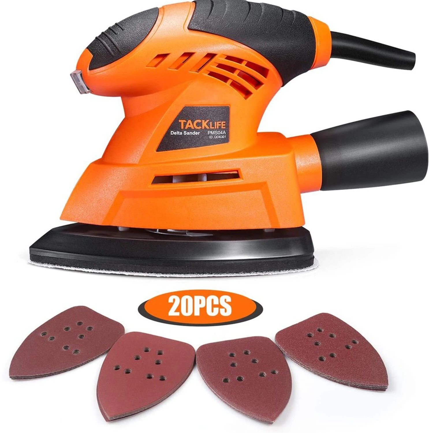 Tacklife Mouse Detail Sander mit einem 1 AMP-Motor, für das Schleifen von Ecken und sehr engen Räumen. Der Mouse Detail Sander liefert großartige Qualität zu einem günstigen Preis. Das ergonomische und leichte Design ermöglicht es Ihnen, die Kontrolle zu behalten, egal ob Sie vertikal oder horizontal arbeiten. Darüber hinaus bieten die Präzisionsgriffe eine erhöhte Fingerfertigkeit beim Schleifen großer Flächen. Sie können den Staubsauger für Ihre verschiedenen Anwendungen auswählen, z. B. zum Schleifen von Holz, Metall, Wänden und lackierten Oberflächen. Dieser Schleifer ist ein Muss für jeden Handwerker oder Profi.