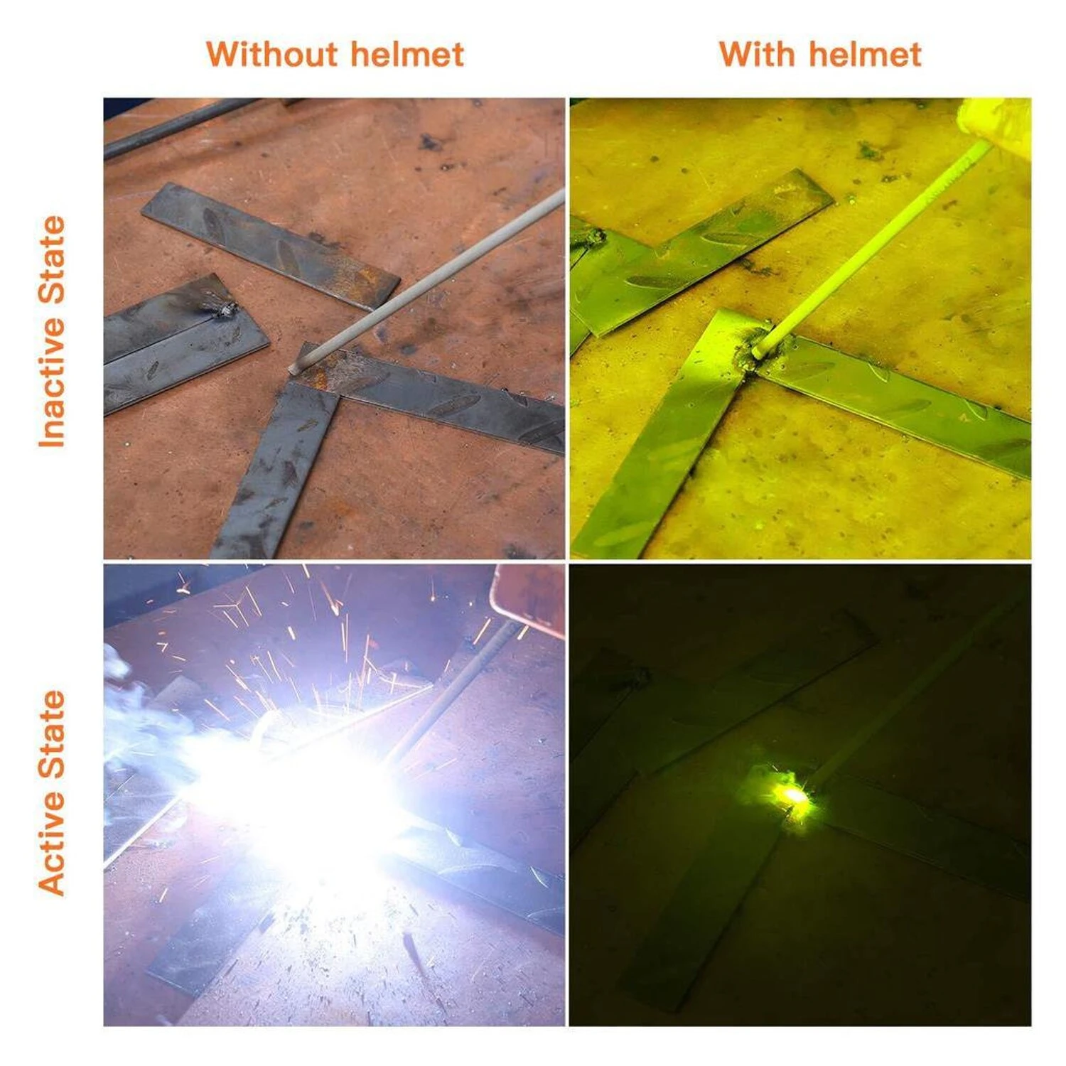 Schnelles automatisches Dimmen – Die professionelle Qualitätsschweißmaske hat 4 Lichtbogensensoren, mehr als die meisten Helme auf dem Markt. Mehr Sensoren bedeutet, dass unser Artikel empfindlicher ist, das automatische Dimmen kann kontinuierlich, genau und in sehr kurzer Zeit (1/20000 Sekunden) erfolgen.
