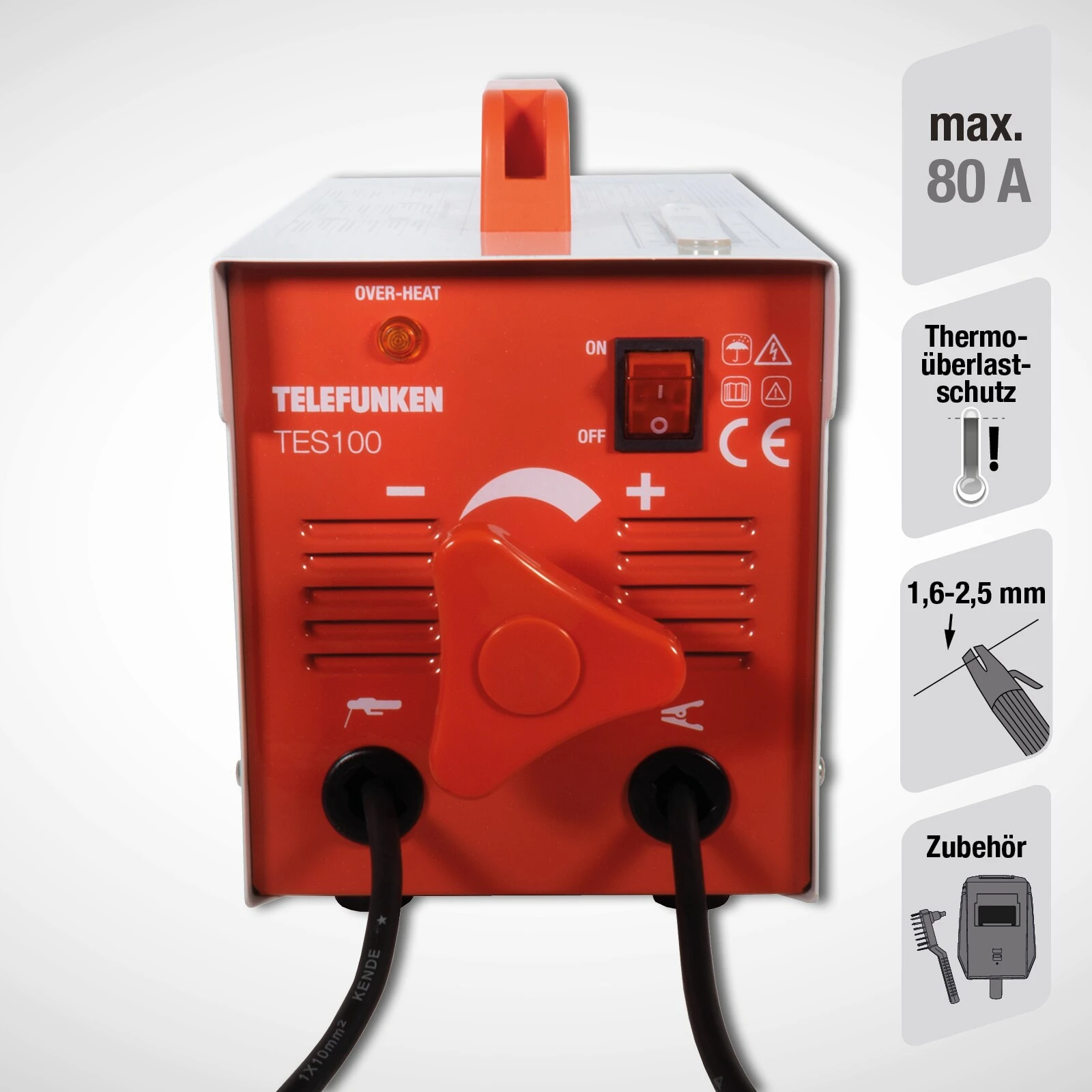 TELEFUNKEN Elektroden Schweißgerät TES100 mit Schweißschild und Schlackehammer