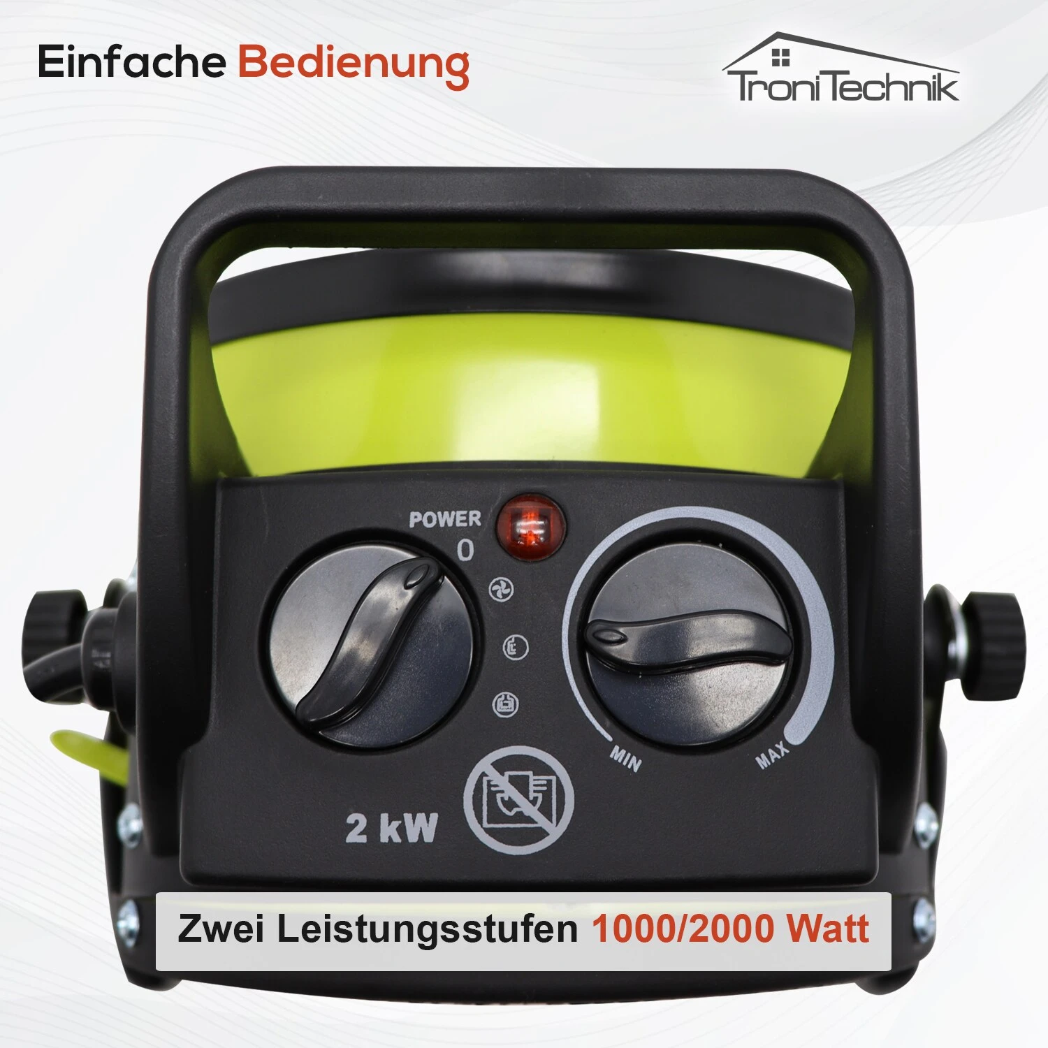 - Zwei Leistungsstufen: 1000/2000 Watt