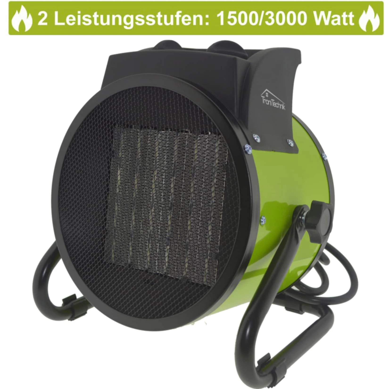 - Zwei Leistungsstufen: 1500/3000 Watt