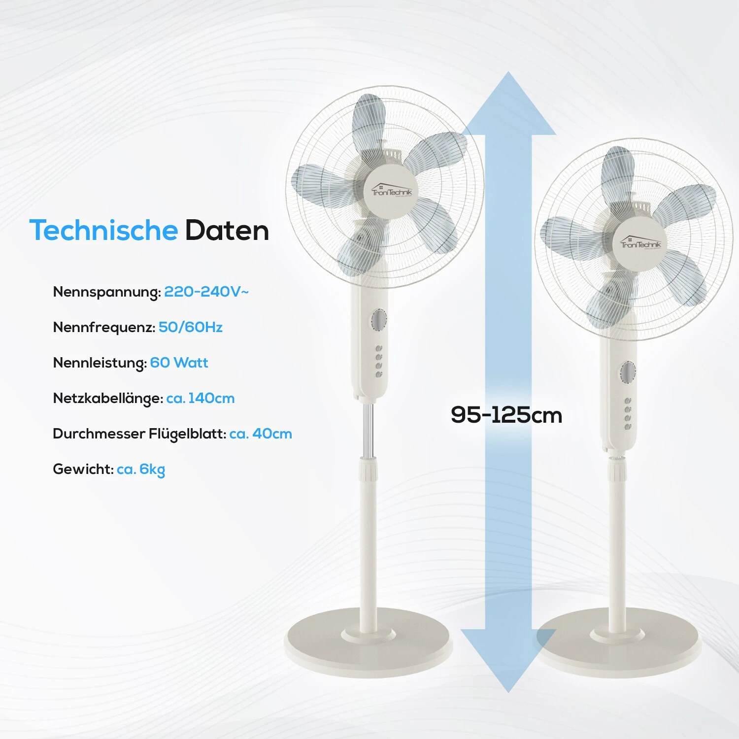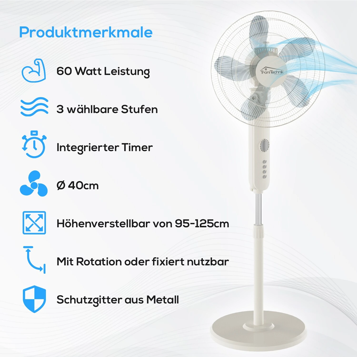 Durch die Höhenverstellbarkeit (95-125cm) und die Möglichkeit zur Oszillation und Fixierung haben Sie alle Bereiche des Hauses oder des Büros spielend leicht belüftet.